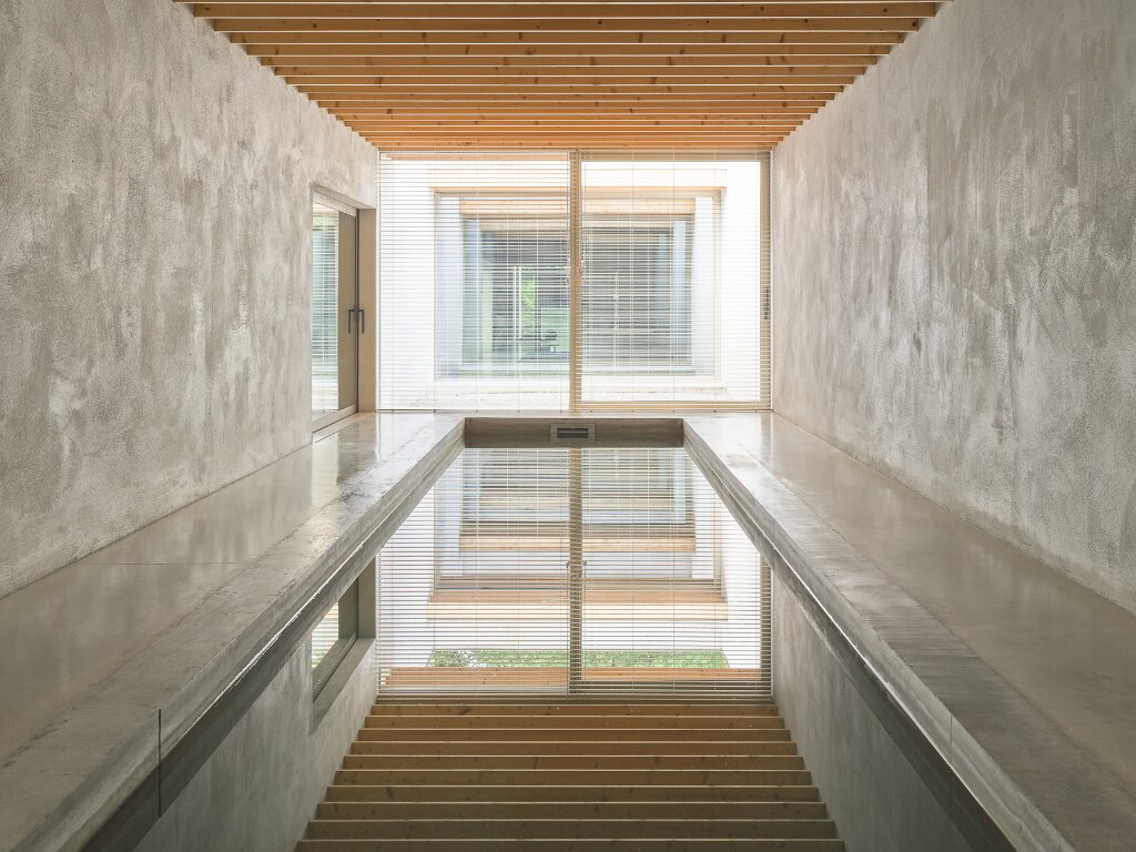 Architecturale laagbouwvilla met binnenzwembad en unieke beleving met het omliggende landschap.