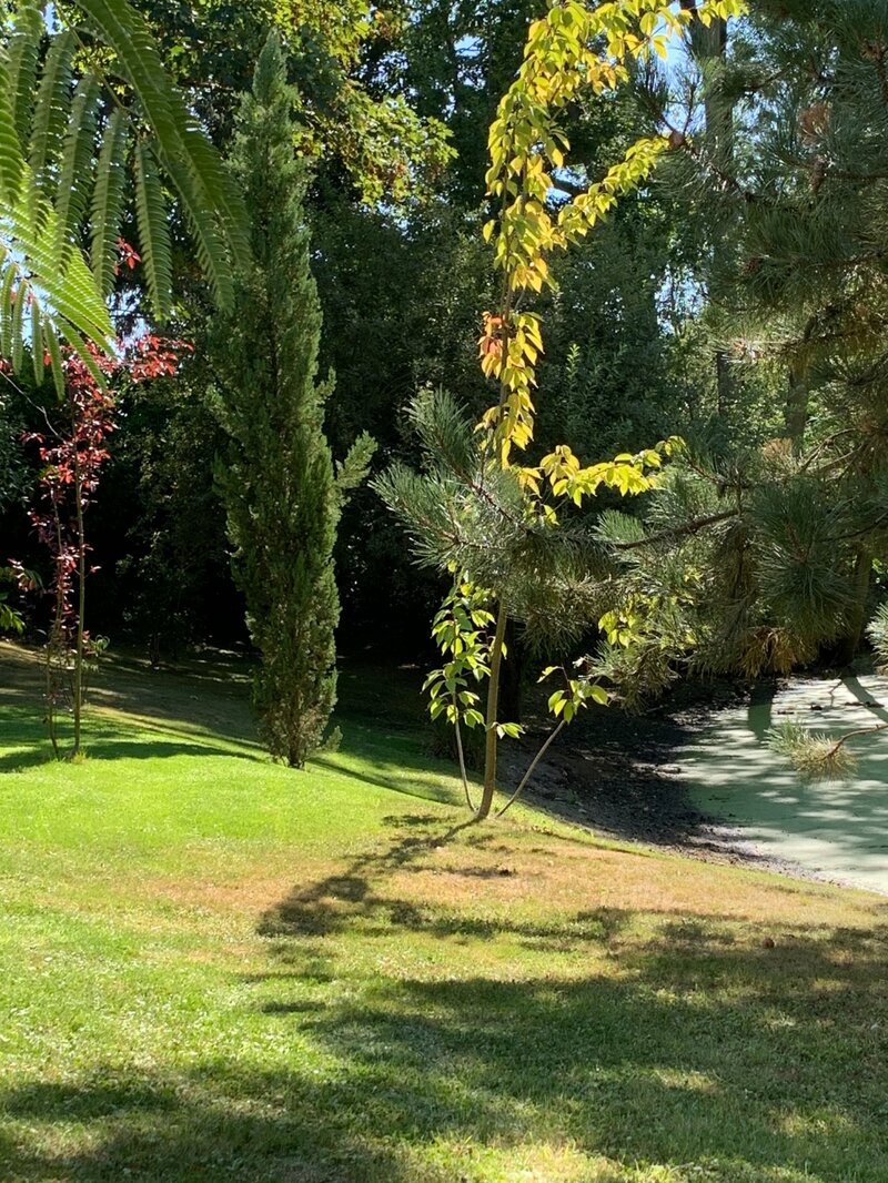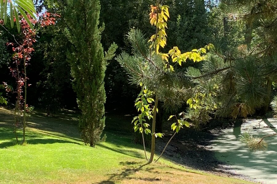 Een volwassen tuin waarin oude bomen en nieuwe beplanting een perfecte harmonie vormen met de vijver. Door het aflopende terrein richting de vijver ontvouwt de tuin zich in al haar perspectieven, telkens opnieuw te ervaren doorheen de dag en de seizoenen.