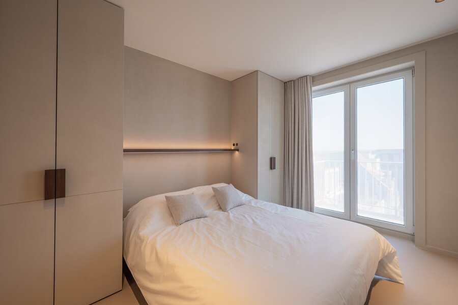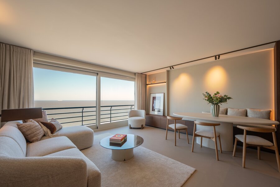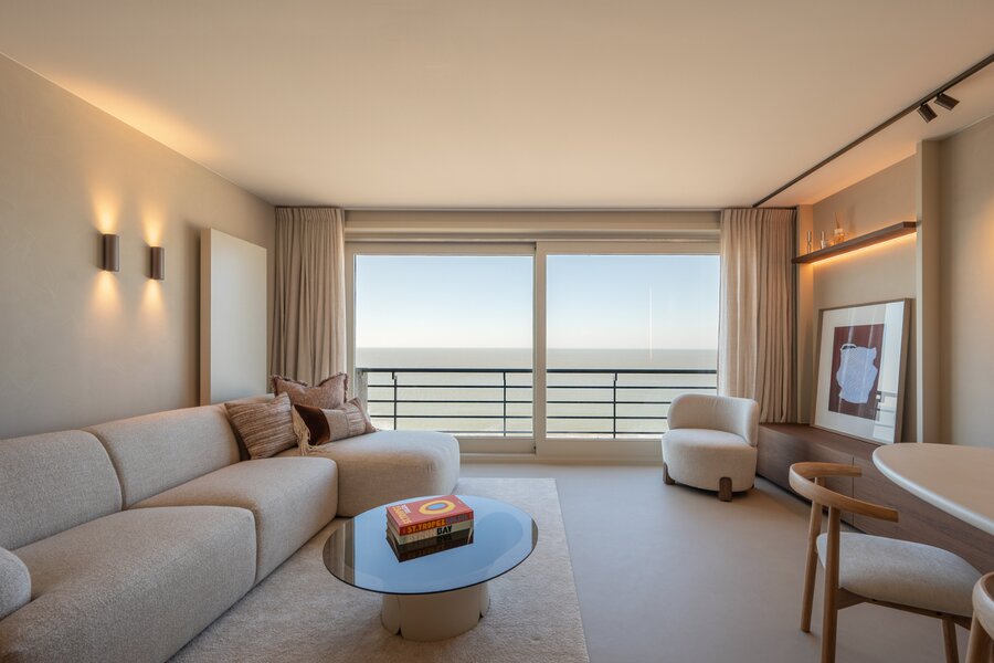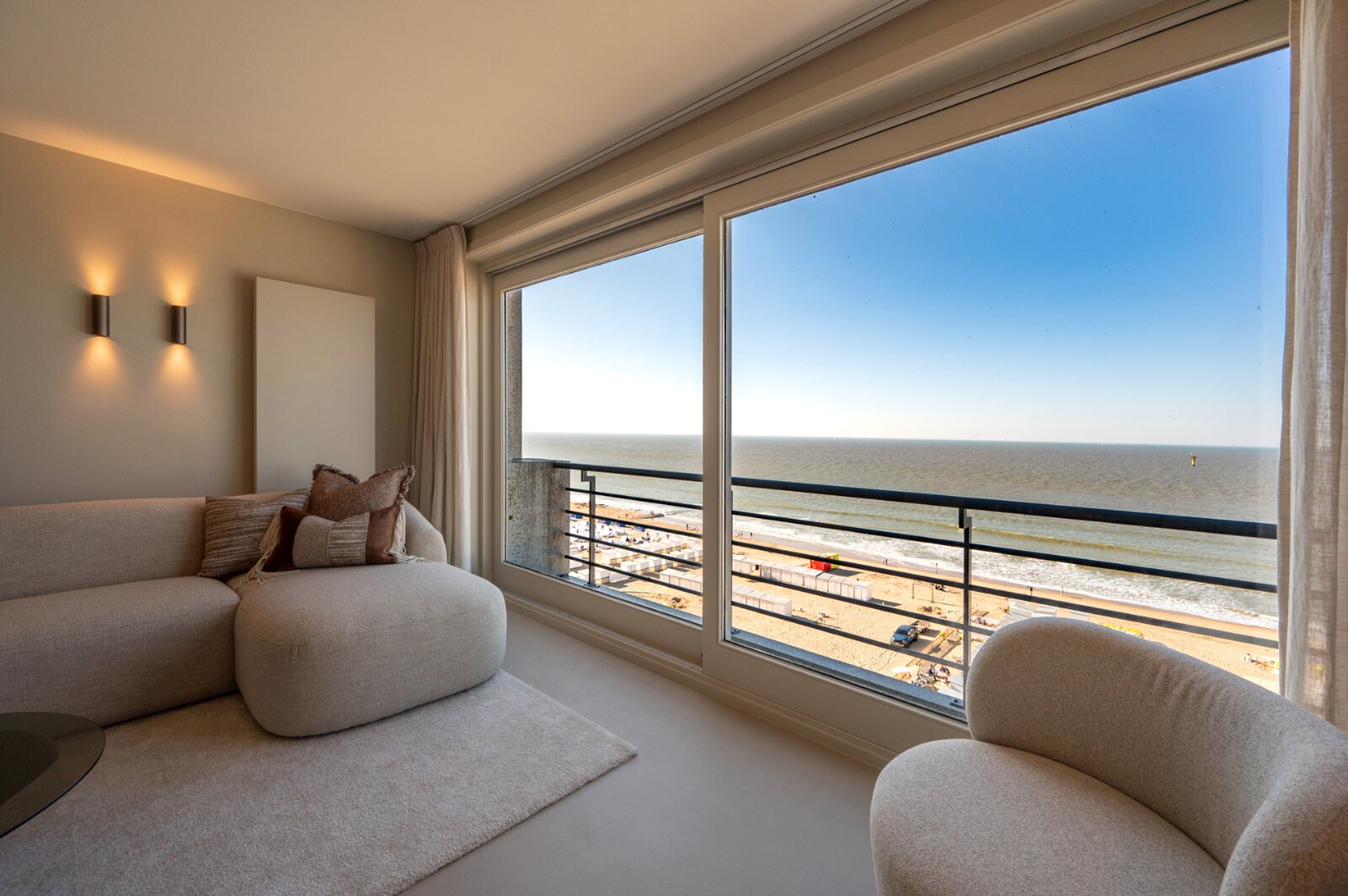 Appartement entièrement rénové et prêt à emménager avec 3 chambres à coucher et vue frontale sur la mer, situé dans une résidence prestigieuse sur la digue au Zoute.