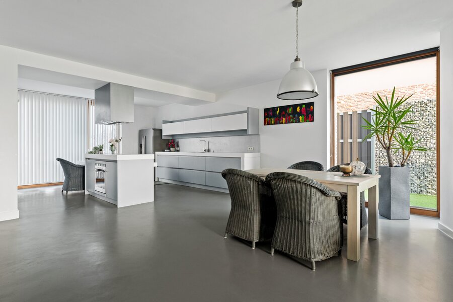 De moderne open keuken is volledig uitgerust met hedendaagse toestellen en beschikt over een charmante ontbijthoek waar u de dag in alle rust kunt beginnen.
