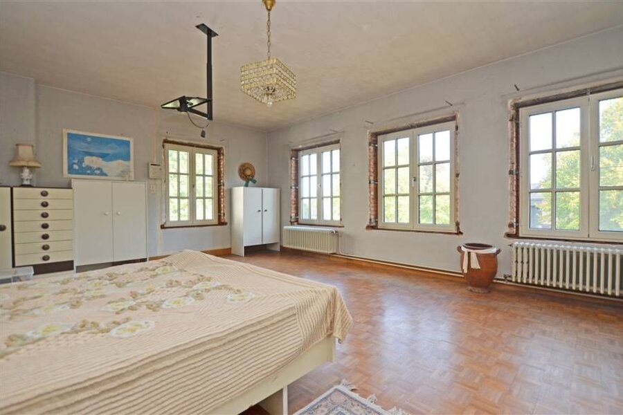Op de eerste verdieping vinden we vier ruime slaapkamers, waarvan twee voorzien zijn van een wastafel, een logeerkamer, een badkamer met ligbad en een afzonderlijk toilet. De zolder strekt zich uit over de volledige woning en biedt nog tal van inrichtingsmogelijkheden.