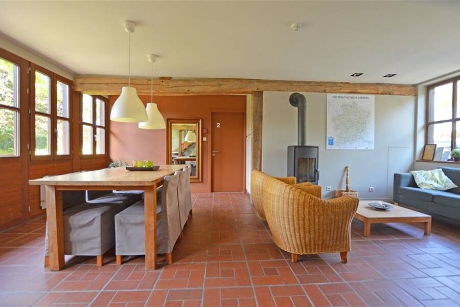 Via de inkomhal met gastentoilet betreden we enerzijds het leefgedeelte met een L-vormige woonkamer en eetkamer waar een open haard voor extra gezelligheid zorgt. Aansluitend bevindt zich de ruime leefkeuken met tuinkamer die dienst doet als tweede eetplaats en dankzij de grote raampartijen rechtstreeks in contact staat met de tuin.