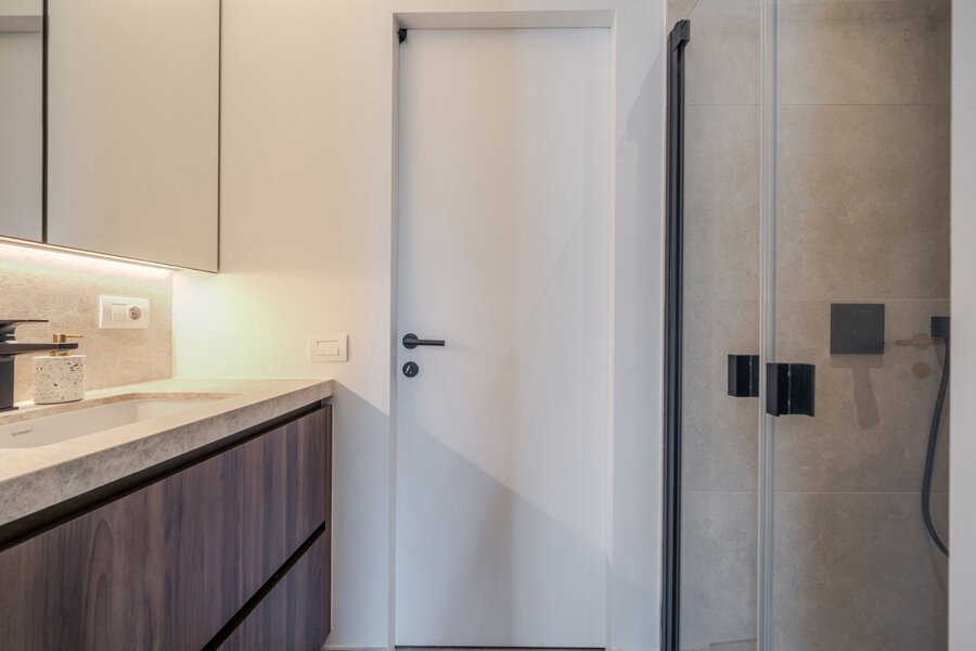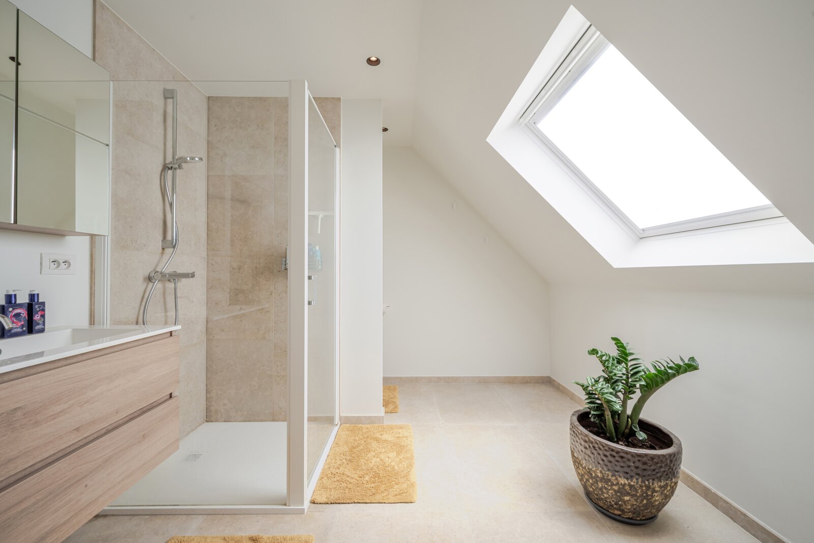Garage intégré et emplacement de parking devant la maison. Atouts supplémentaires : store solaire, système d’alarme, caméras et finitions de qualité.