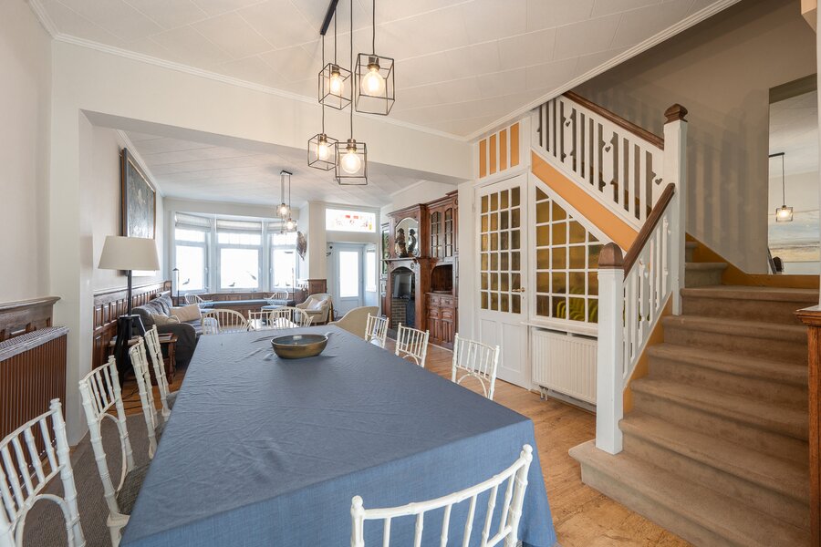 De woning biedt maar liefst vijf slaapkamers en vijf badkamers, verdeeld over royale leefruimtes met authentieke elementen en een warme, tijdloze uitstraling. Hoewel de woning opgefrist mag worden, ademt ze charme en potentieel ideaal als stijlvolle gezinswoning of als tweede verblijf aan zee.