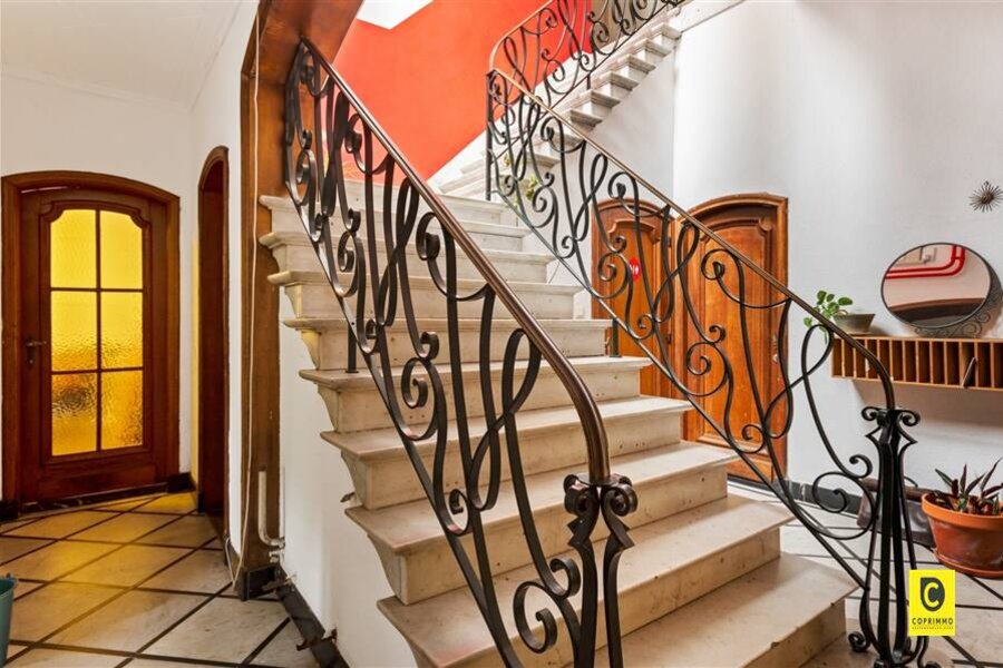 La façade monumentale à l'ornementation raffinée et aux détails en fonte compte parmi les réalisations les plus prestigieuses de Redig. Avec la remise, cette propriété offre environ 716 m² (cfr. EPC), complétés par un sous-sol de 115 m².