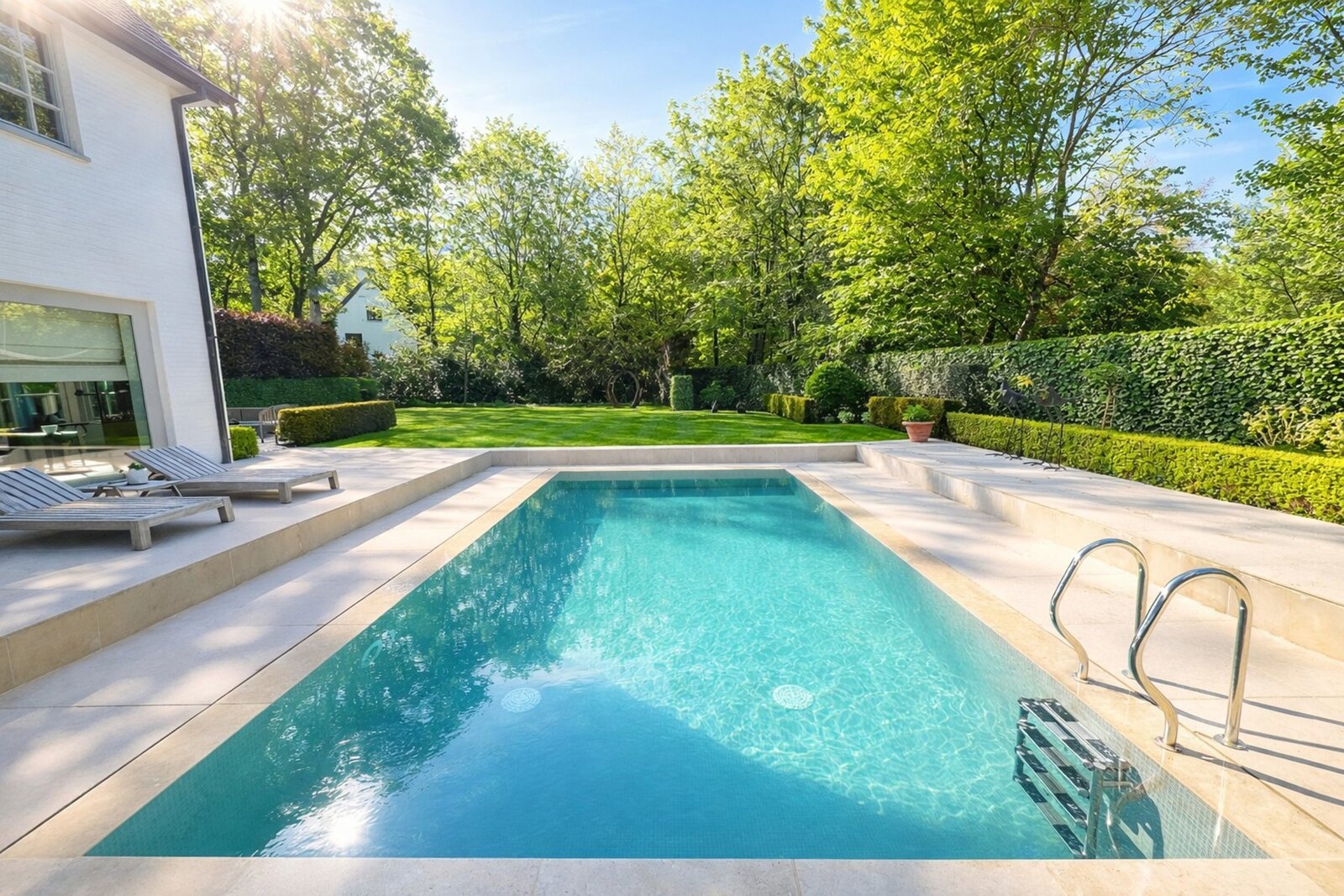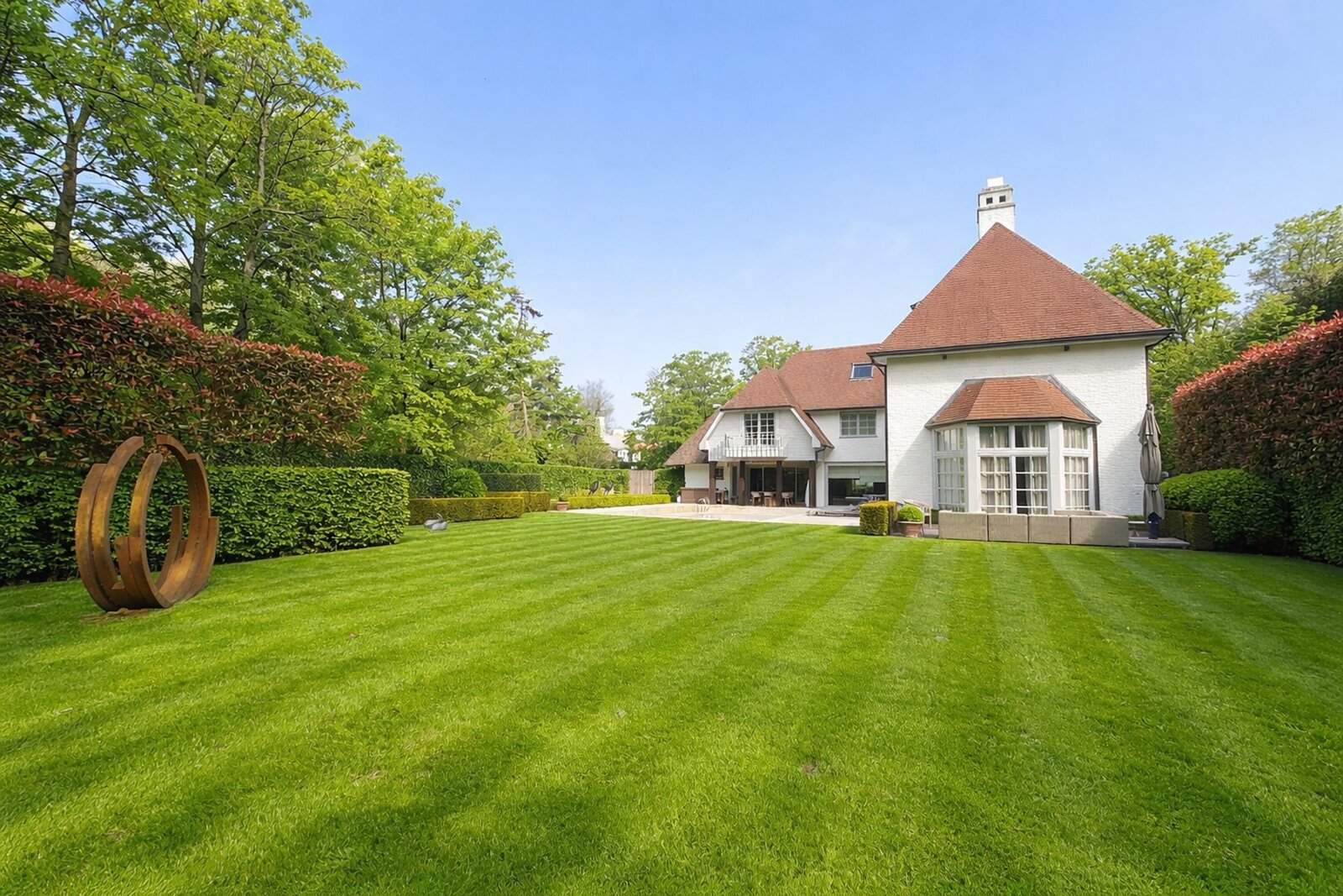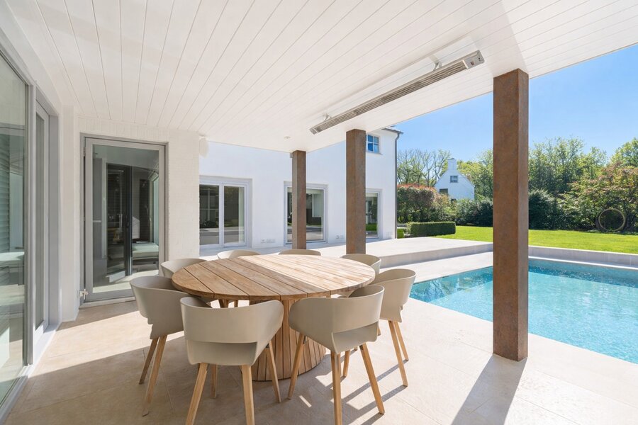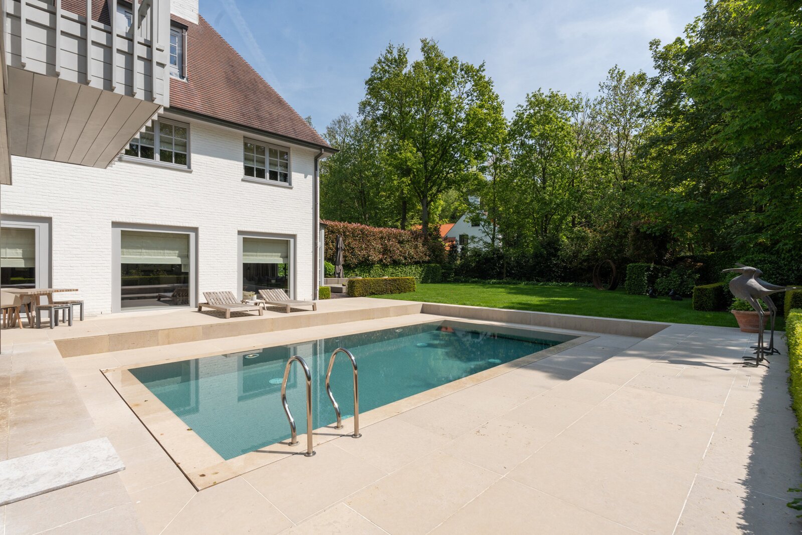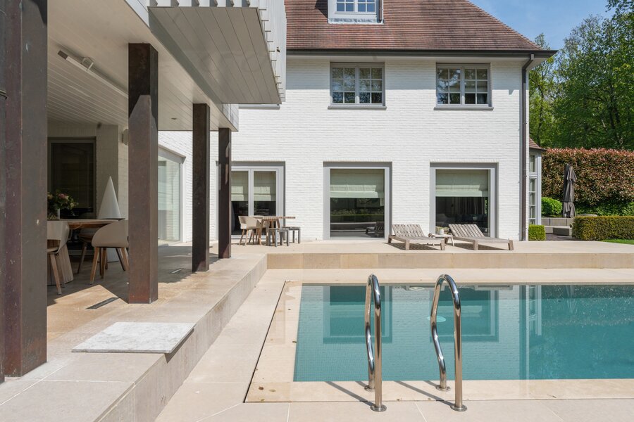 Le jardin ensoleillé constitue un véritable domaine privé, avec de vastes terrasses orientées sud et une piscine élégante qui mettent pleinement en valeur la vie en extérieur. Le sous-sol comprend une pièce technique, une buanderie, une cave froide et une cave à vin, contribuant ainsi au confort et à la fonctionnalité exceptionnels de cette propriété.