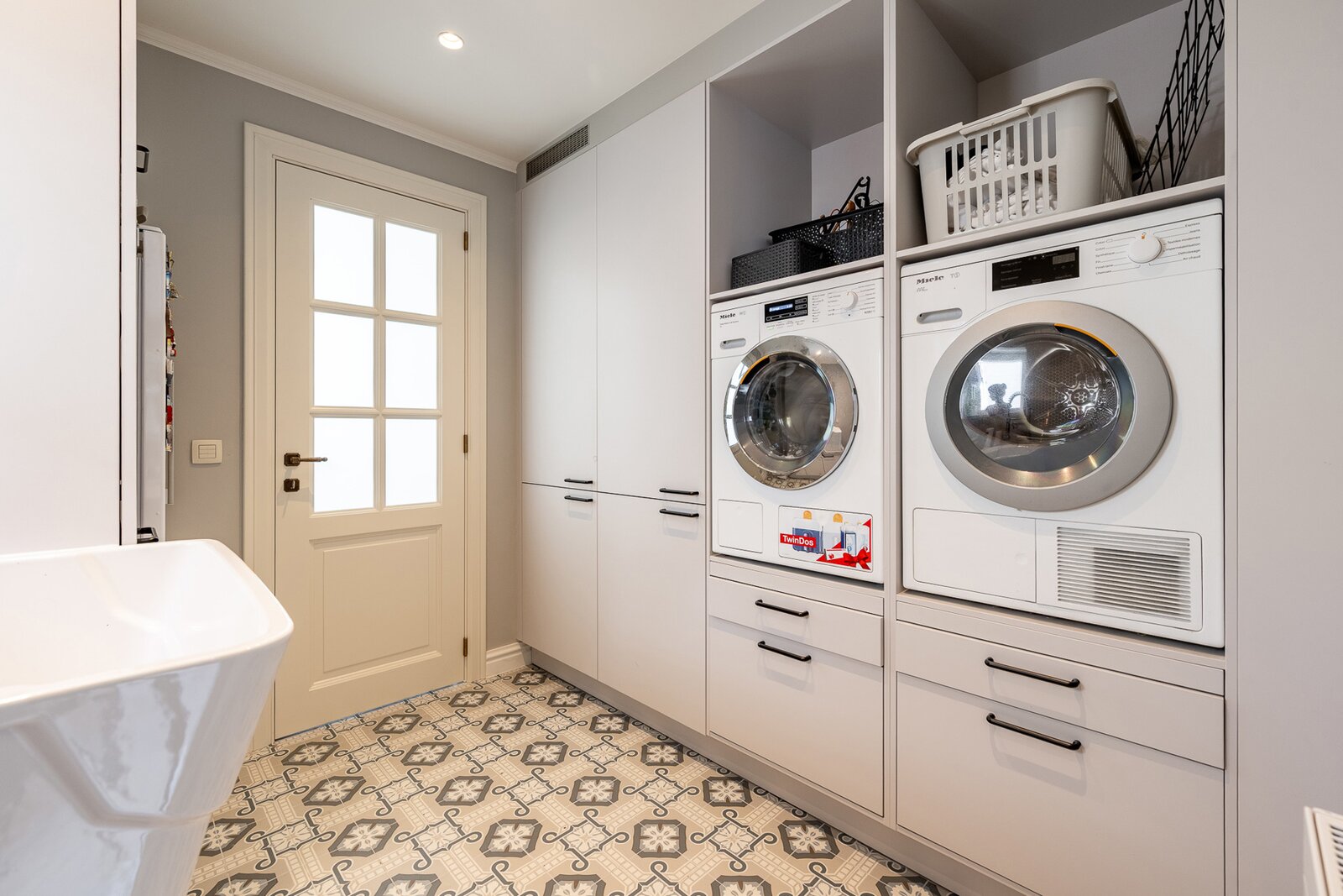 Grâce à ses hauts plafonds, la maison bénéficie d’une sensation d’espace exceptionnelle et d’une belle luminosité. En entrant dans la maison, vous accédez à un hall d’entrée qui mène à un séjour et une salle à manger baignés de lumière. Dans le prolongement se trouve une cuisine spacieuse et entièrement équipée, offrant de nombreux espaces de rangement, complétée par une buanderie pratique.