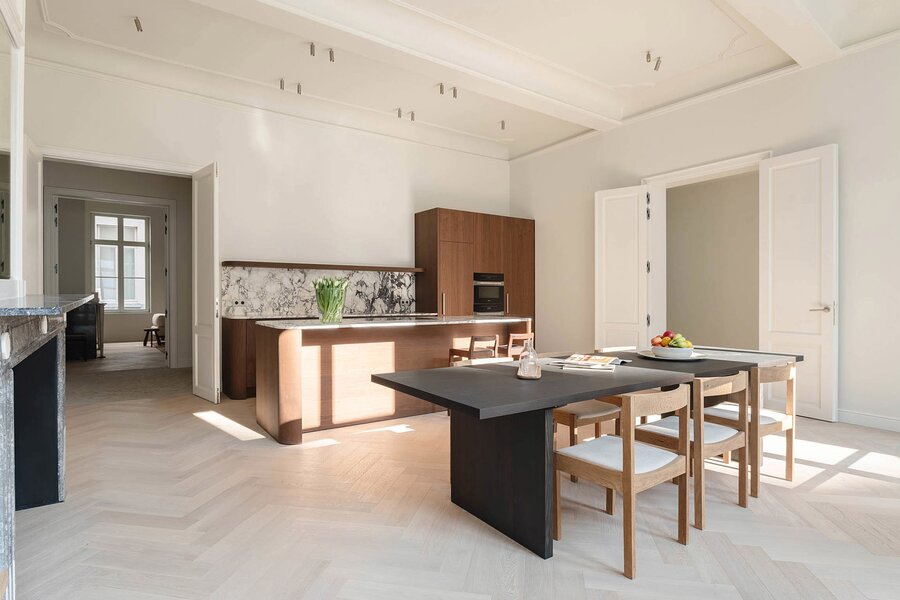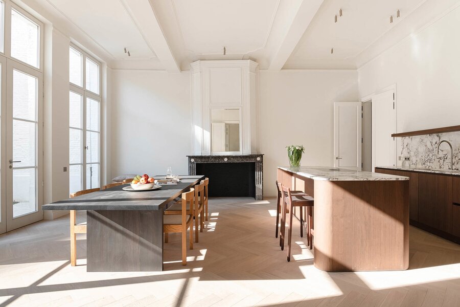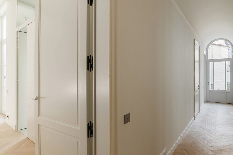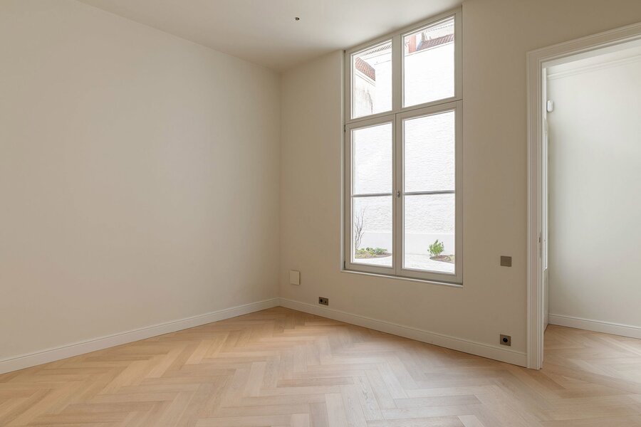 Cet appartement lumineux se trouve dans une majestueuse maison bourgeoise qui a été entièrement rénovée récemment, tout en conservant les cheminées et les moulures d'origine. L'appartement a été aménagé avec des matériaux haut de gamme: Obumex, Woodstoxx, Prado, Sumum, Azzari.. Les hauts plafonds, les grandes baies vitrées et l'agencement bien pensé renforcent la sensation d'espace. Le hall d'entrée dispose d'un vestiaire, de toilettes pour invités et d'un débarras. En face du spacieux salon se trouvent la cuisine entièrement équipée et la salle à manger, avec un accès direct au jardin orienté sud et une vue sur la cathédrale. Le couloir de nuit mène à la chambre principale avec salle de bains attenante et patio. Vient ensuite une deuxième chambre spacieuse avec salle de bains attenante, donnant sur le jardin.