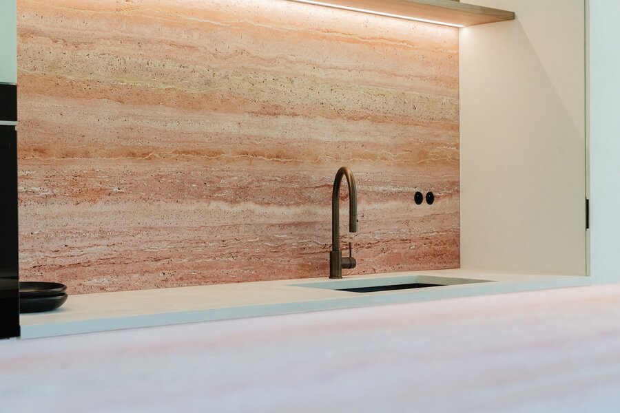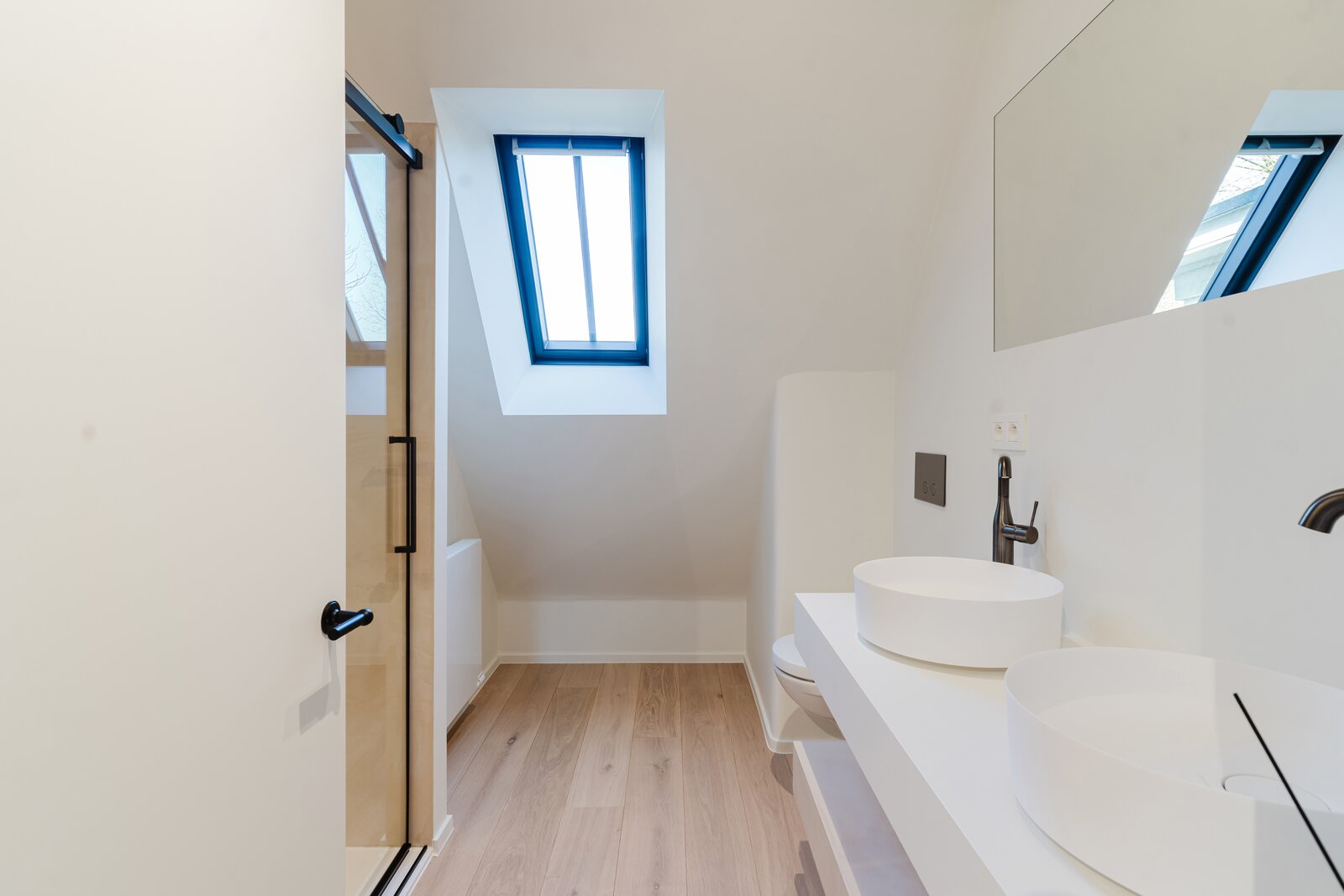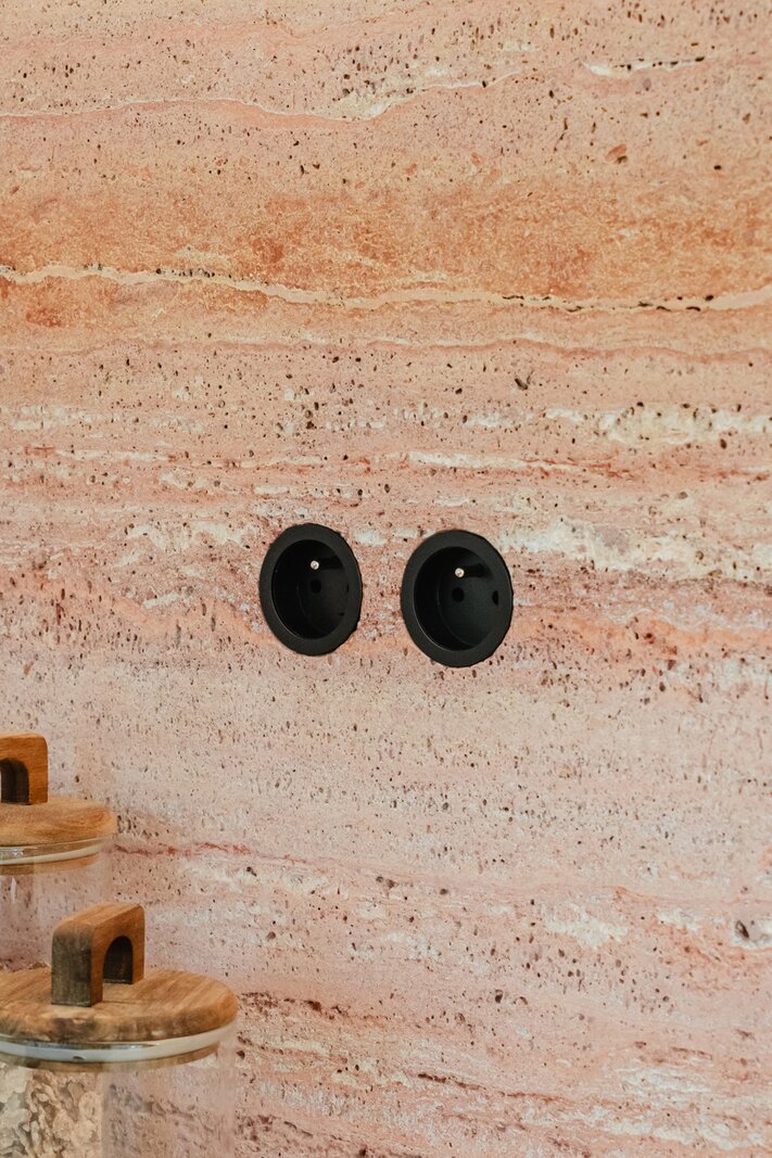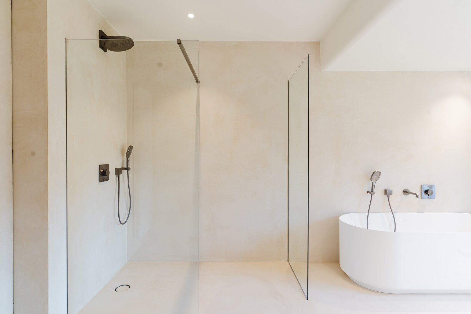 Le rez-de-chaussée se compose d'un hall d'entrée spacieux avec un escalier ouvert, d'un garage séparé, de toilettes pour invités, d'un salon lumineux donnant accès à la terrasse couverte, d'une cuisine ouverte entièrement équipée avec des matériaux haut de gamme (Mortex, noyer, travertin) qui donne accès à la deuxième terrasse ainsi qu'au débarras. La porte arrière permet d'accéder directement au sous-sol et à la cuisine. Le rez-de-chaussée a bénéficié de finitions haut de gamme et offre de nombreuses possibilités (cave à vin/espace bien-être/salle de sport/buanderie/bureau à domicile).