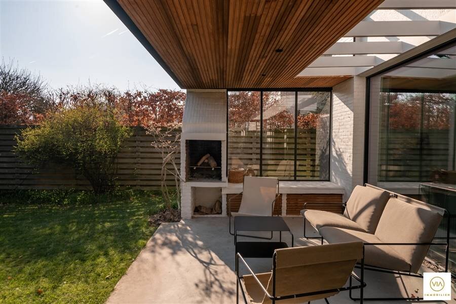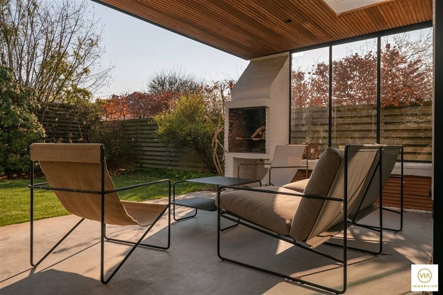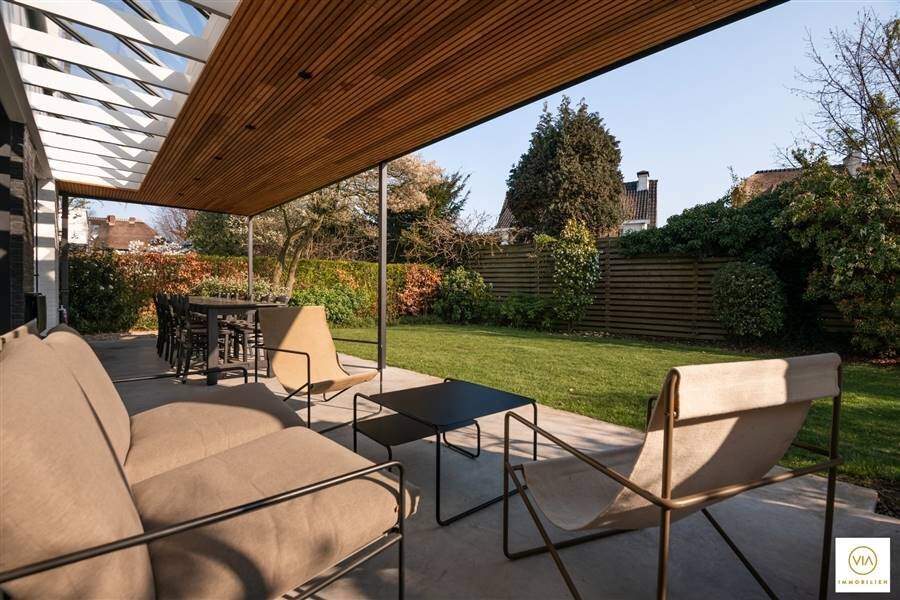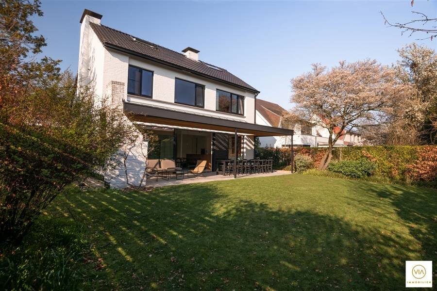 ARCHITECTONISCHE UITMUNTENDHEID EN DESIGN: Deze opvallende woning heeft een verfijnde, moderne uitstraling met strakke witte gevels, donkere accenten en elegante proporties die hem laten opvallen in de woonomgeving. De woning is voorzien van hoogwaardige architectonische details, waaronder grote ramen van vloer tot plafond, naadloos geïntegreerde binnen- en buitenruimtes en doordacht ontworpen overdekte buitenruimtes met houten plafondafwerking. De woning werd recent volledig vernieuwd nav SCONE ARCHITECTS.