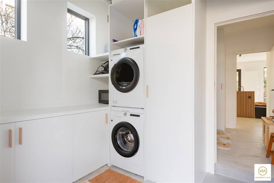 HEDENDAAGSE AFWERKING: In de hele woning zult u de hoogwaardige materialen waarderen, waaronder gepolijste betonnen vloeren, Mortex, moderne verlichting en een verfijnd kleurenpalet dat helder wit combineert met warme houttinten. Elk detail weerspiegelt zorgvuldige aandacht voor moderne ontwerpprincipes en kwaliteitsconstructie.