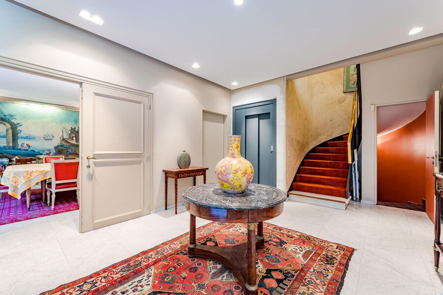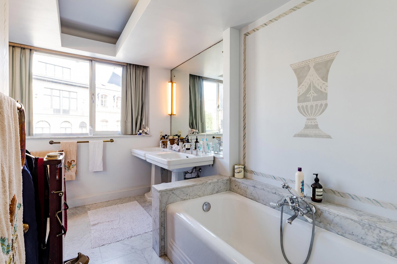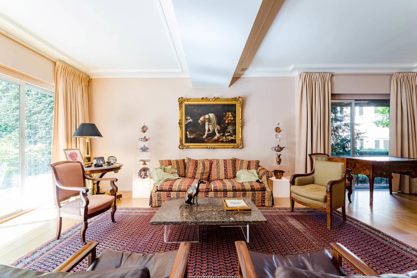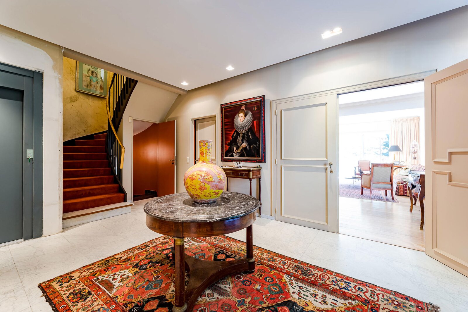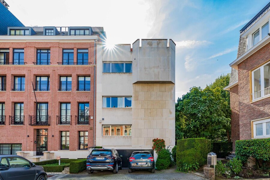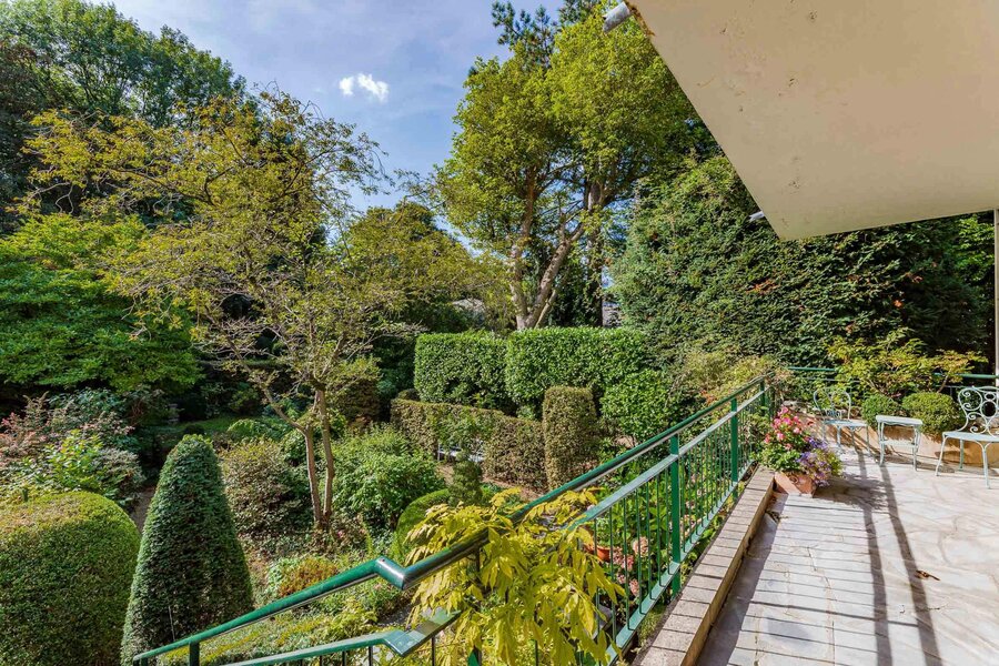 Dans le très exclusif square du Bois, très belle maison de caractère doté d’un splendide jardin paysagé par Jacques Wirtz, orienté plein Sud, s’ouvrant sur le Bois de la Cambre (terrain de +/- 6 ares85). Surface habitable de +/- 600 m² divisé actuellement en deux unités : une maison avec de grandes réceptions (2 sallons, salle à manger) 4 chambres, 3 salles de bains et un duplex penthouse de 200 m² jouissant d’une belle terrasse panoramique .Belles réceptions, cuisine hyper-équipée, 3 chambres, 2 salles de bain.. Ascenseur. Garage 2 voitures. PEB D