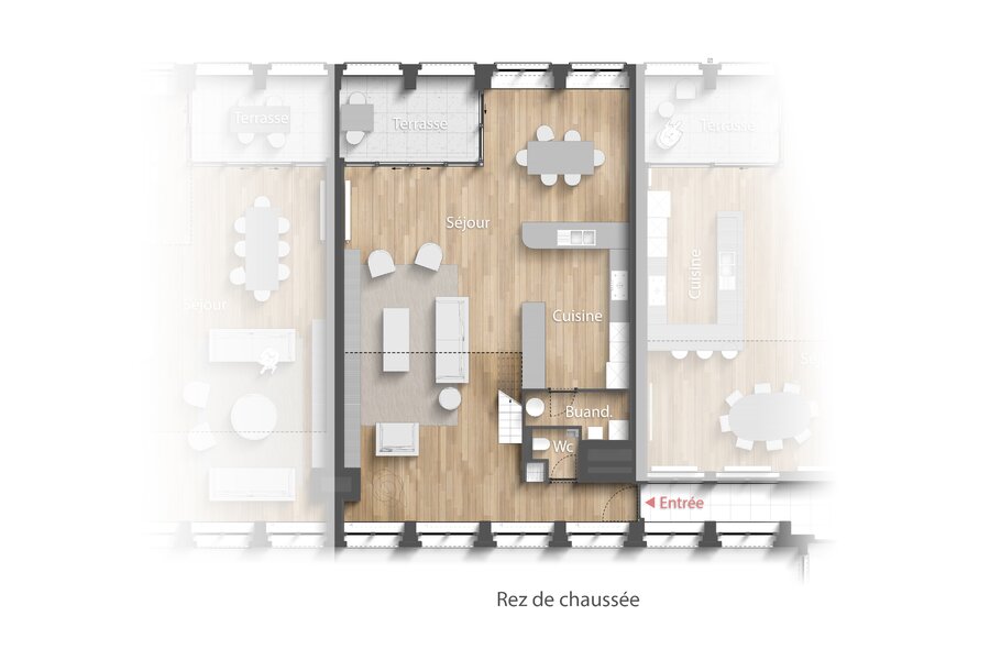 Possibilité 2 emplacements de parkings réservés (non inclus, à vendre ou à louer)