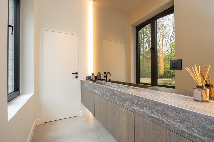 Deze imposante villa is uitgebreid gerenoveerd met moderne technologieën. Er is geïnvesteerd in energiezuinige maatregelen zoals zonnepanelen, een warmtepomp, airconditioning in alle slaapkamers, vloerverwarming op het gelijkvloers, enz., wat heeft geleid tot een gunstig A-label.