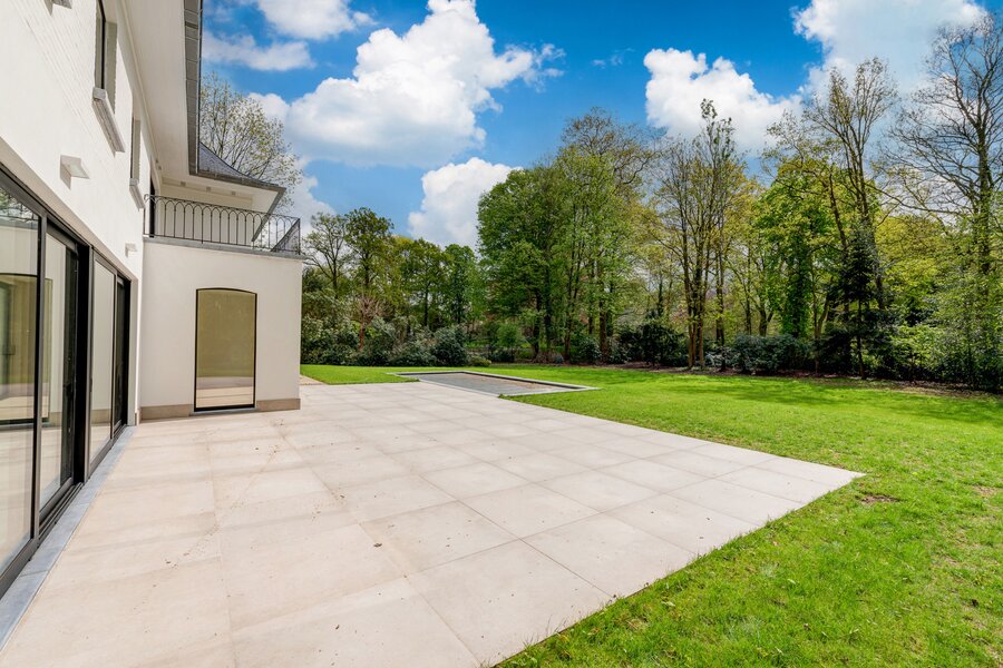 De royale tuin biedt een gunstige ligging ten opzichte van de zon en heeft volop privacy. De terrassen grenzen aan het zwembad, dat is uitgerust met een automatisch rolluik. De tuin is volledig omheind en heeft een automatische toegangspoort met videofonie.