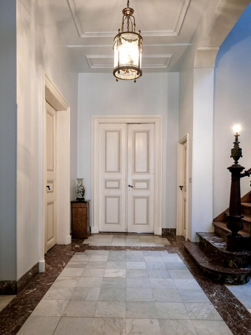Bij het betreden van dit pand wordt u omarmd door een gevoel van grandeur: een kenmerkend trappenhuis, rijk gedetailleerde salons met lijstwerk, verfijnde lambriseringen en prachtige marmeren schouwen allen ontworpen door de gerenommeerde architect I. Alleweireldt (1824-1892). Dit is een woning die een statement maakt: groots in uitstraling en luxueus in elk authentiek detail.