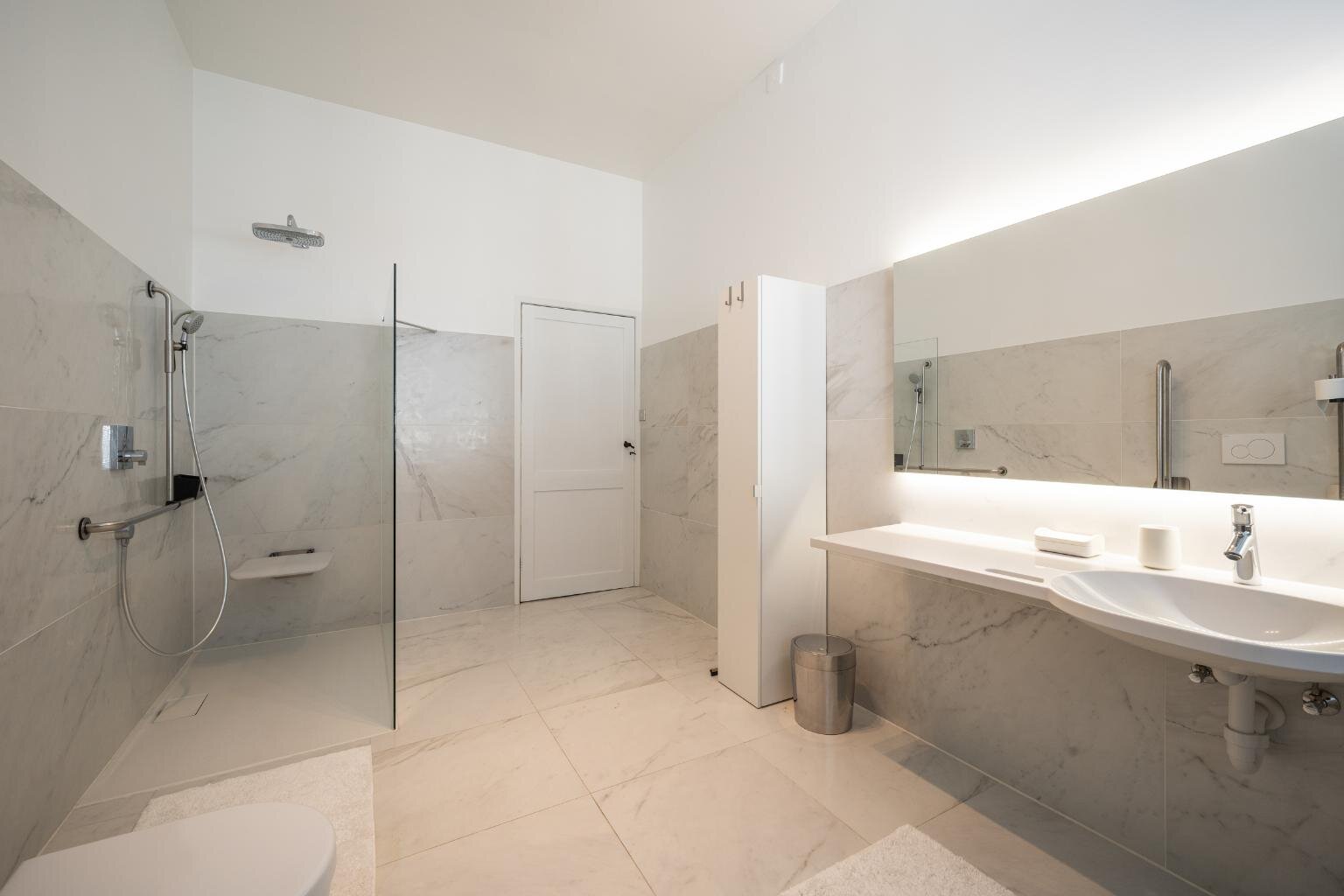 Binnenin ontvouwt zich een weelderig en stijlvol interieur, rijk aan authentieke elementen en historische details. De imposante laat classicistische gevel teruggaand op een oude 17de-eeuwse kern, met een zorgvuldig bewaarde 17e eeuwse barokke deuromlijsting, straalt een klassieke charme uit die de tand des tijds moeiteloos heeft doorstaan. Een bijzonder detail is de gevel aan de Augustijnenrei, met een stadstuin gedragen door zeven elegante korfbogen op stevige pijlers.