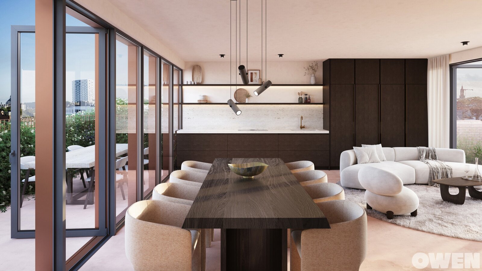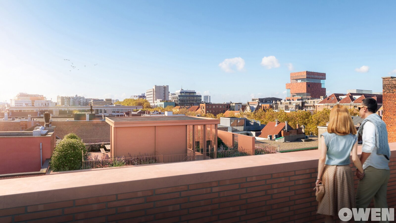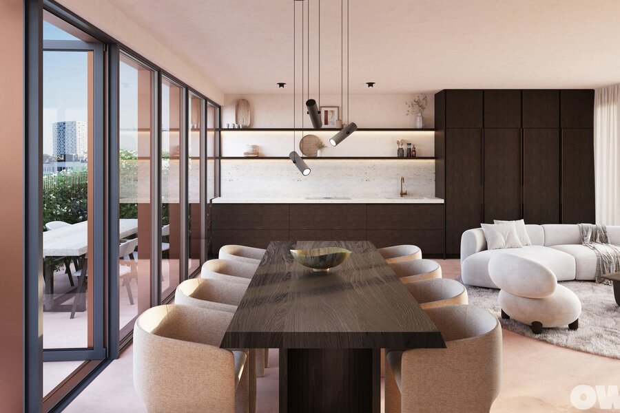 Les appartements ont une superficie comprise entre 49 et 151 m² et comprennent une, deux ou trois chambres à coucher. Chaque appartement est soigneusement conçu et fini selon des normes élevées, avec de généreuses terrasses allant jusqu'à 43 m² et/ou des jardins privés allant jusqu'à 20 m², garantissant une intimité maximale et une expérience de vie exceptionnelle. En outre, les terrasses et jardins communs sur les toits créent une dynamique unique et offrent des vues à couper le souffle sur la ville. La résidence est conçue dans un souci d'efficacité énergétique.