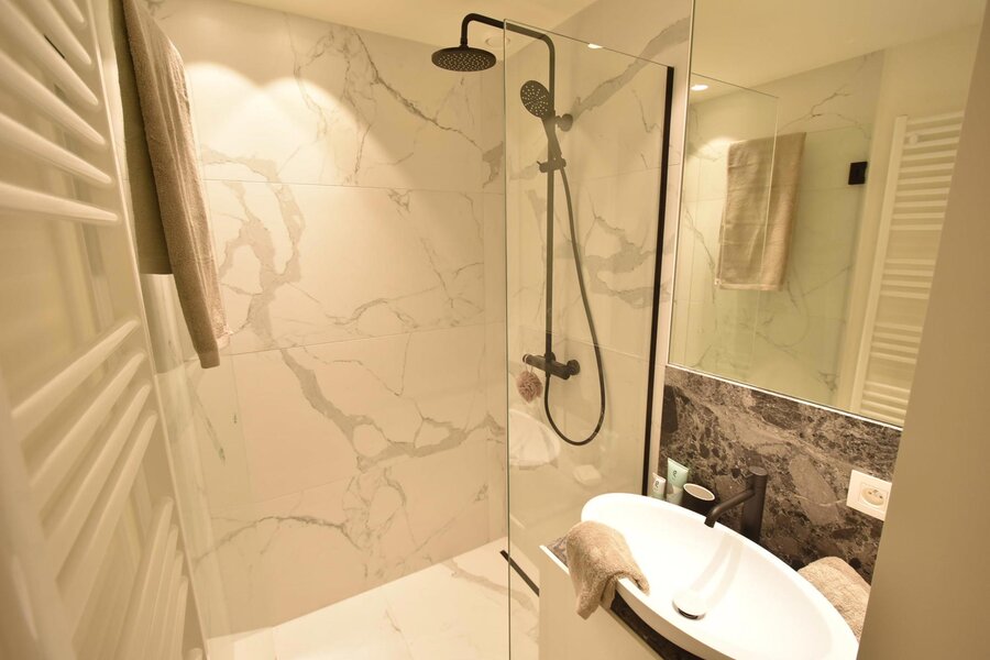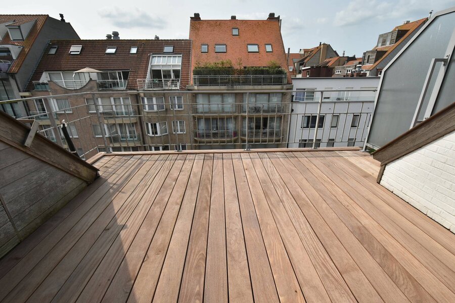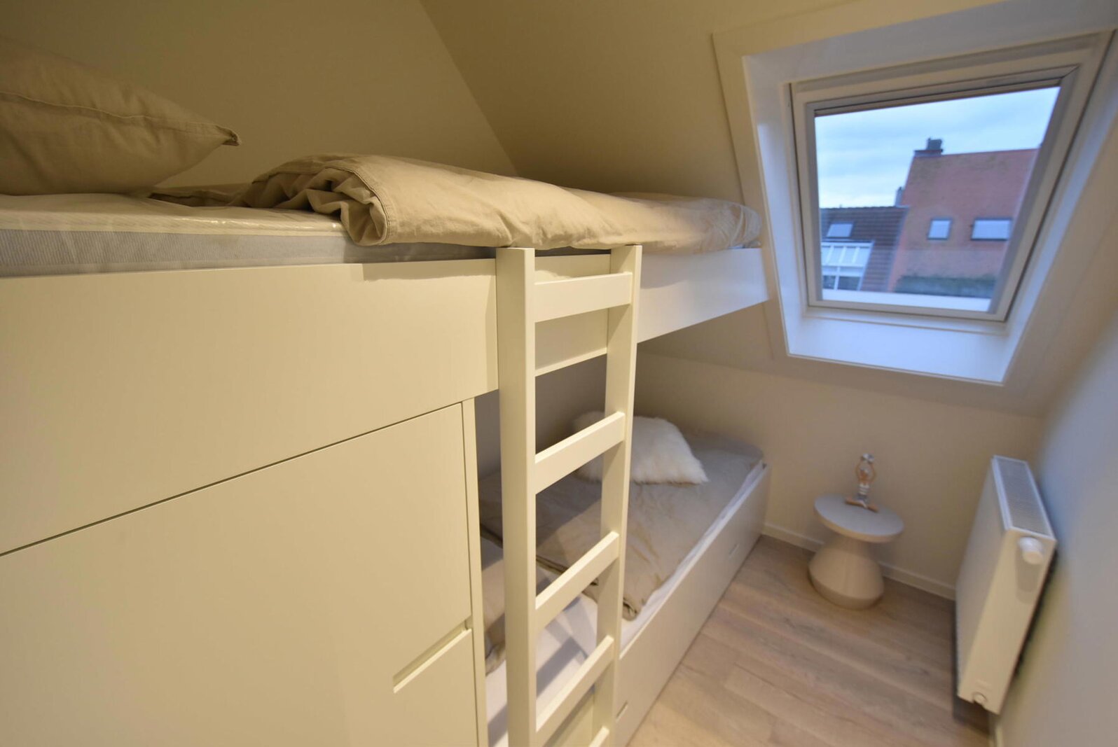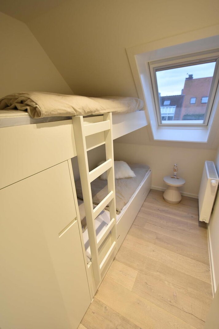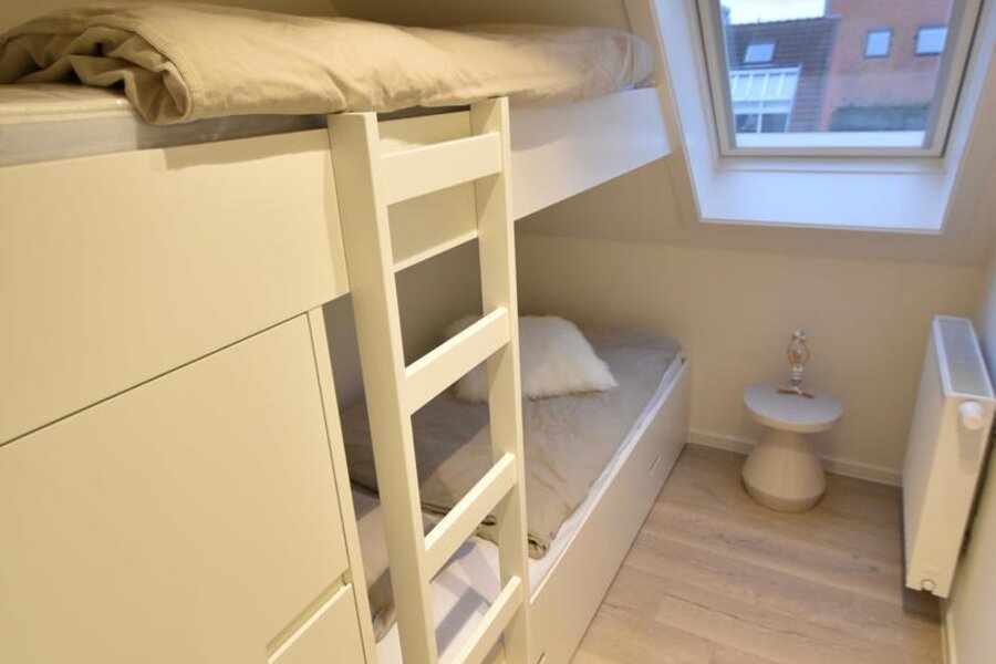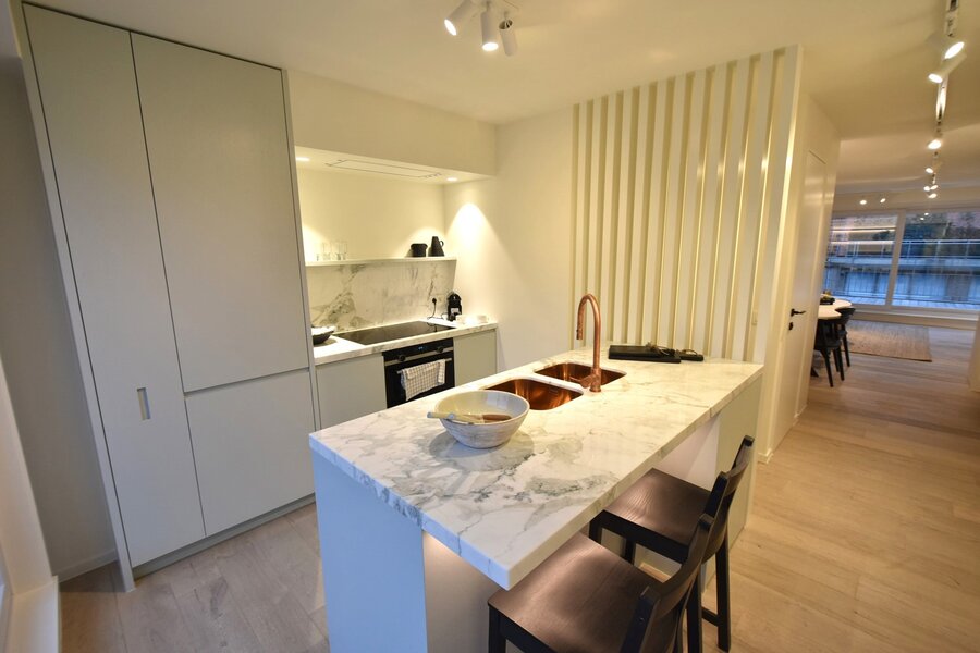 APPARTEMENT DUPLEX ENSOLEILLÉ, LUXUEUSEMENT FINI ET ENTIÈREMENT MEUBLÉ SITUÉ À QUELQUES PAS DE LA MER ET DE L'AVENUE LIPPENS. Composition : hall d'entrée avec vestiaire et toilette, séjour avec bureau donnant sur une belle terrasse ensoleillée, coin petit déjeuner donnant sur la terrasse arrière, cuisine équipée et débarras - à l'étage : toilette, 2 ch à c complètes, 1 ch à c pour un lit superposée et 2 salles de douche. Cave et local à vélos. Possibilité d'acheter un parking dans le bâtiment adjacent.