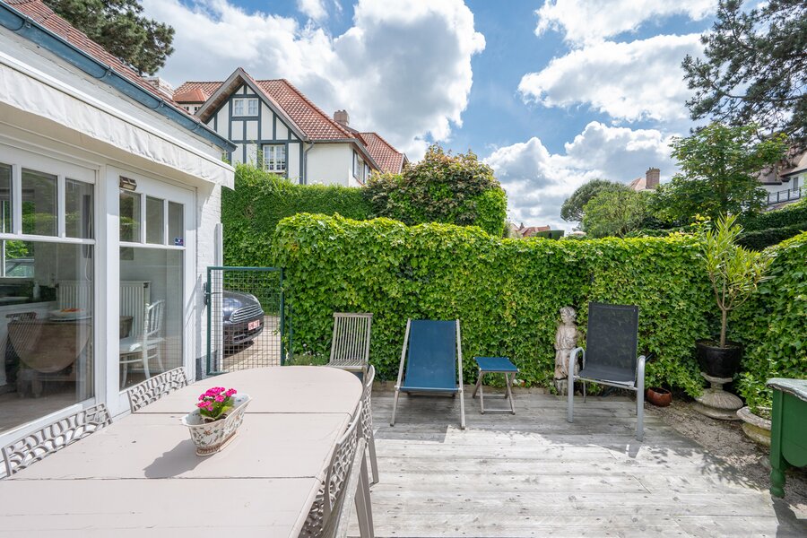 Charmante villa jumelée de style typique du Zoute avec beaucoup de charme, cachée dans un sentier du Zoute. Composition : vestiaire. Salons chaleureux et très cosy. Foyer ouvert. Salle à manger. Cuisine bien équipée. Spacieuse terrasse exposée sud-ouest. Buanderie, local à vélos. Escaliers menant au premier étage avec 2 chambres et 2 salles de bains. Le deuxième étage se compose de 2 chambres et 2 salles de bains. 4 Emplacements extérieurs. Villa "SUN LIT" : belles vues et beaux volumes. Veuillez visiter nos bureaux sur rendez-vous.