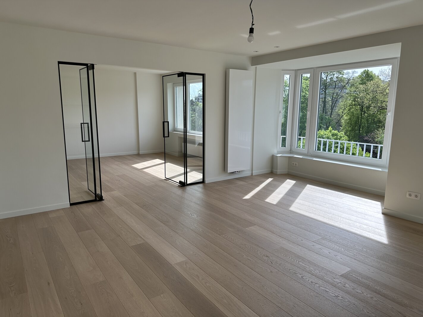 GENT, Hubert Frère - Orbanlaan 62 Topligging ( vlakbij winkels, De Krook, Capitole, openbaar vervoer en autostrades ) Op wandelafstand van Gent centrum en winkels, vlot bereikbaar en parkeergelegenheid in directe omgeving. Prachtig ruim ( 183 m² : volgens EPC en kadaster, oppervlakte indicatief ) stijlvol gerenoveerd instapklaar luxueus appartement ( met indrukwekkende breedte van 11,50 meter die zorgt voor een zekere grandeur ) met 3 ruime slaapkamers ( 15m², 16m² en 17,50m² ) op de vierde verdieping in standingvolle Residentie Central Park. Grote inkom met berging/vestiaire. Zeer ruime zonnige living, veel lichtinval, prachtig uitzicht ( Zuidpark ), NIEUWE parketvloeren eik ( inkom, living, gang en slaapkamers ), terras ( brandtrap ) achteraan, afzonderlijke wc, grote afzonderlijke berging ( aansluiting was-en droogmachine ), videofoon, NIEUWE ramen ( superisolerende hoogrendementsbeglazing 1.0 ) deels met elektrische rolluiken vooraan . De grote raampartijen , over de gehele breedte van het appartement, bieden een uniek uitzicht over het Zuidpark. NIEUWE open volledig ingerichte keuken , mooie NIEUWE badkamer ( ligbad en wc ) en mooie NIEUWE douchekamer ( inloopdouche ), 2 kelders. Ruime garagebox met nieuwe sectionale poort in het gebouw is INBEGREPEN. Watertoets : P - en G score : A. NIEUWE elektrische installatie : goedgekeurd tot 2049 ! , indeling appartement : zie bijgevoegd plan ( indicatief ). EPC : 117 kWh/m² jaar : B = energiezuinig. Dit appartement + 2 kelders + garage wordt verkocht onder INSTELPRIJS 735.000 Euro. Een instelprijs is een minimumprijs die de verkoper vooropstelt . Enkel biedingen hoger dan deze instelprijs worden voorgelegd aan de verkoper, die het bod al dan niet kan aanvaarden. Voor inlichtingen en/of bezichtiging : 0475/92.66.55.