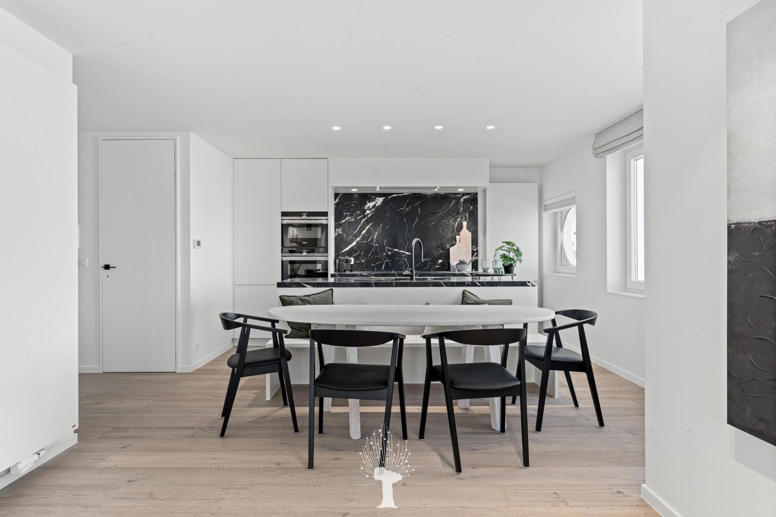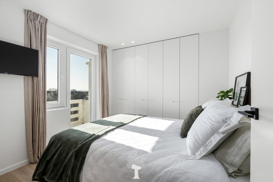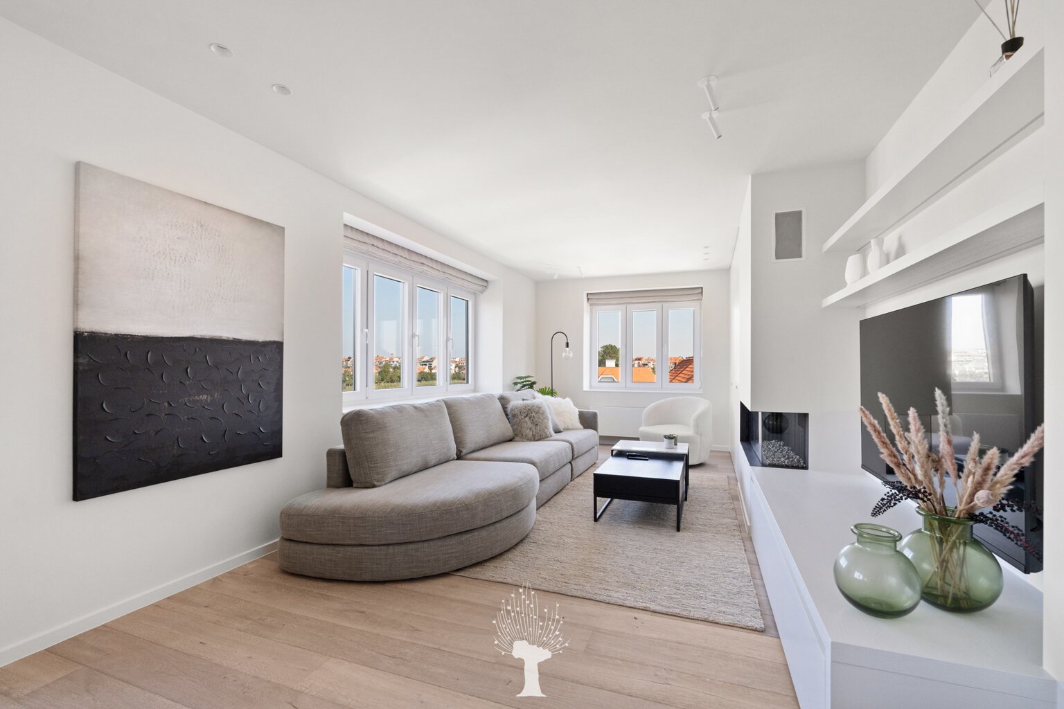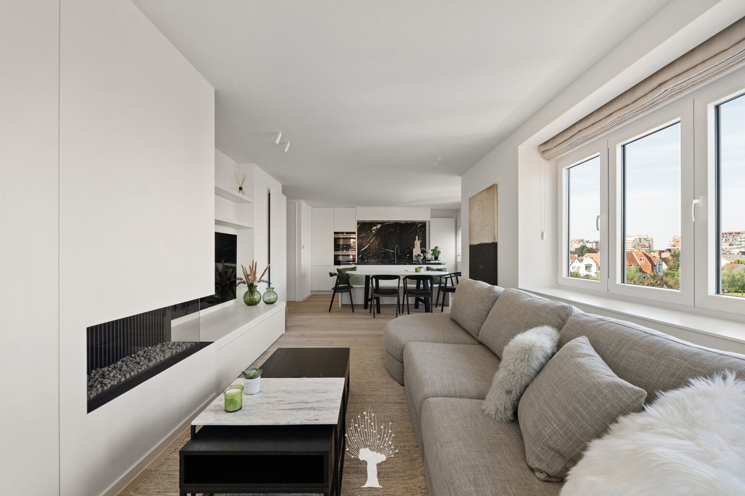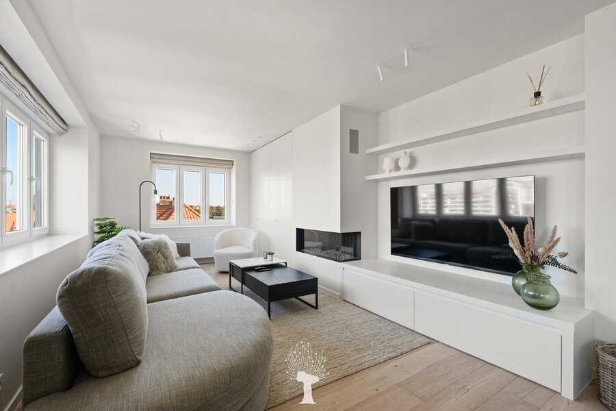 Appartement de coin luxueusement rénové dans une petite villa-résidence de standing avec de superbes vues sur le Lac de la Victoire ("Zegemeer"). Composition : hall d'entrée avec vestiaire et toilette. Séjour et salle à manger lumineux avec vues dégagées sur le lac et ouvrant sur agréable terrasse. Cuisine ouverte, entièrement équipée. 3 chambres à coucher, 3 salles de bains. Possibilité d'achat d'un grand box de voiture avec cave dans la résidence. Visites volontiers après rendez-vous en nos bureaux.