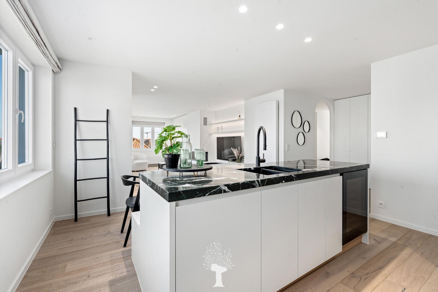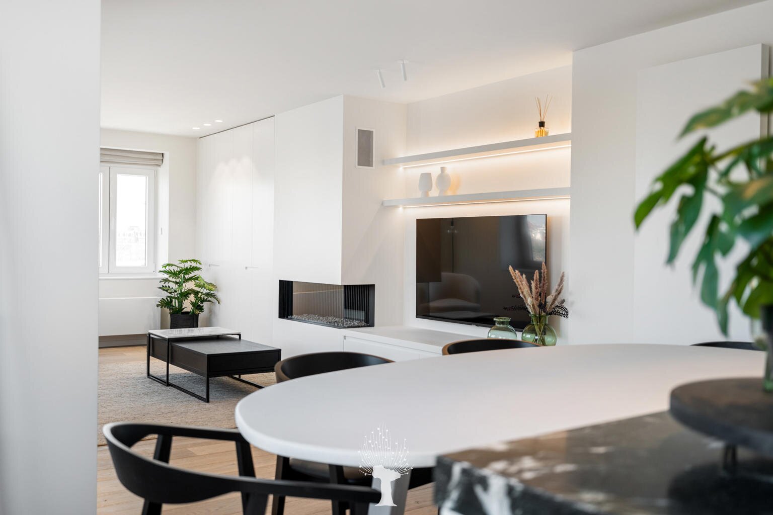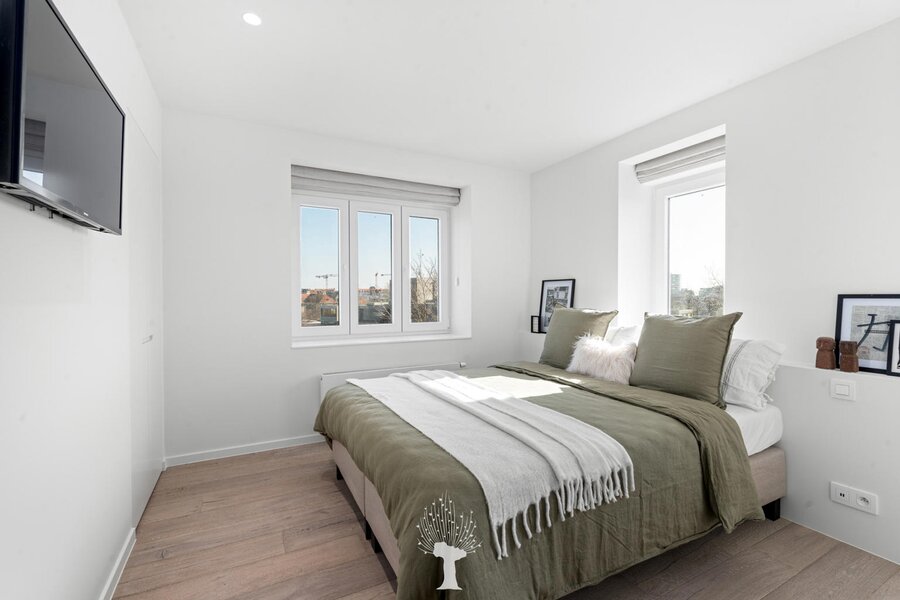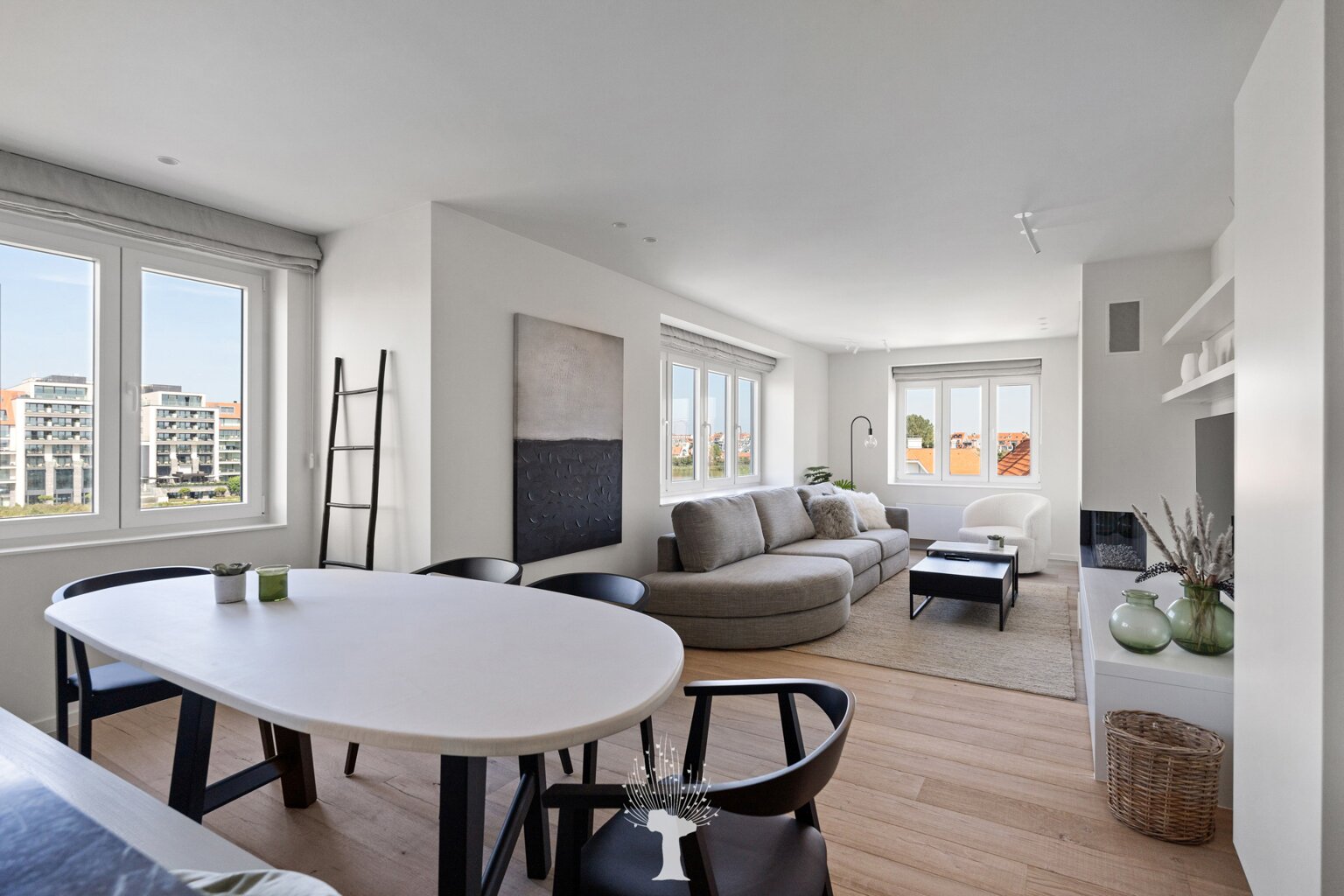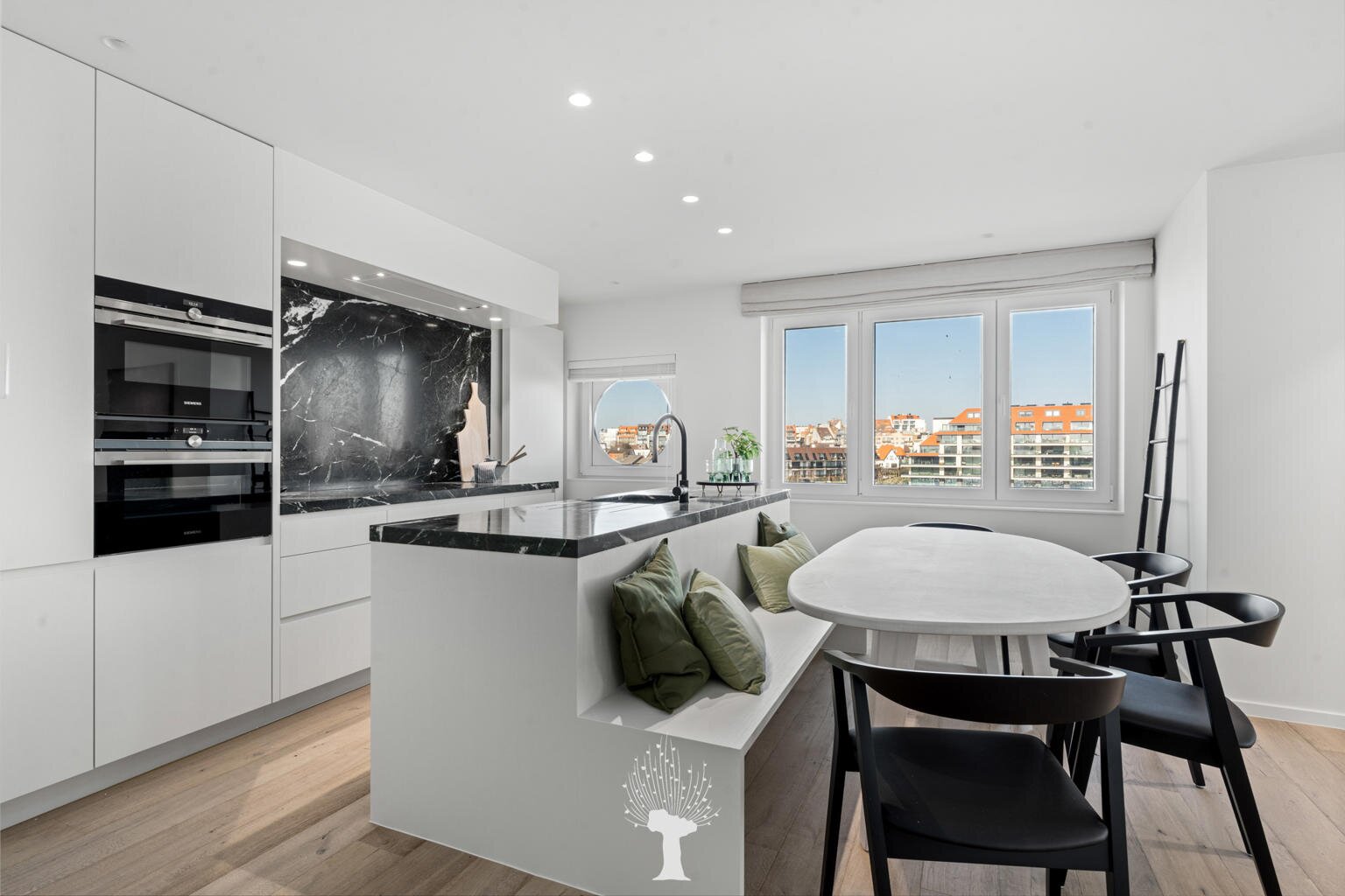 Appartement de coin luxueusement rénové dans une petite villa-résidence de standing avec de superbes vues sur le Lac de la Victoire ("Zegemeer"). Composition : hall d'entrée avec vestiaire et toilette. Séjour et salle à manger lumineux avec vues dégagées sur le lac et ouvrant sur agréable terrasse. Cuisine ouverte, entièrement équipée. 3 chambres à coucher, 3 salles de bains. Possibilité d'achat d'un grand box de voiture avec cave dans la résidence. Visites volontiers après rendez-vous en nos bureaux.