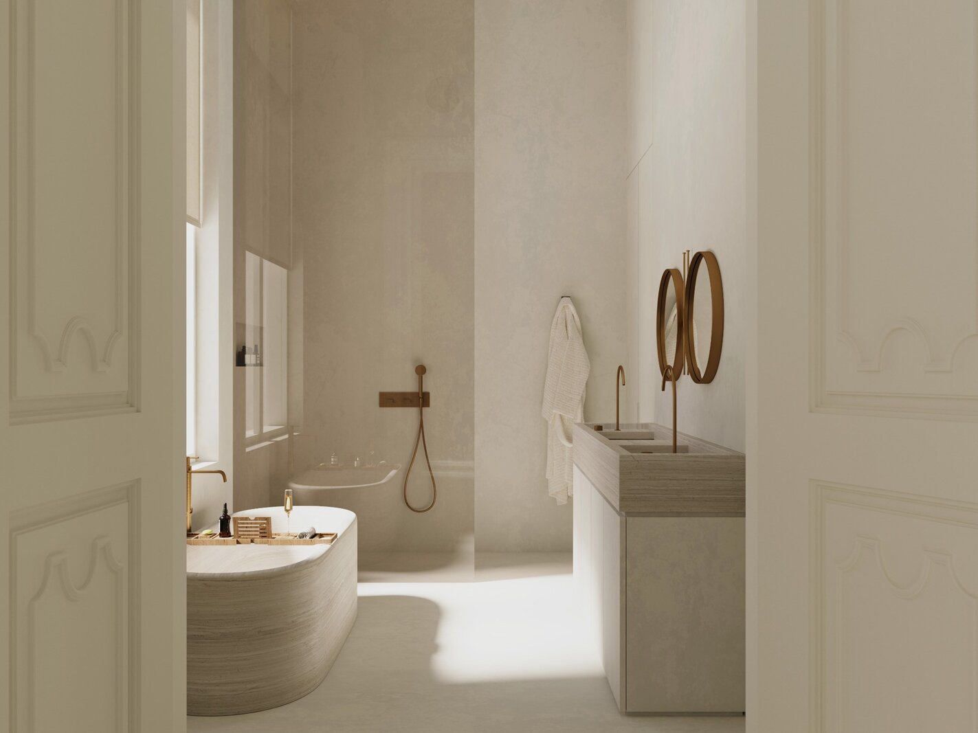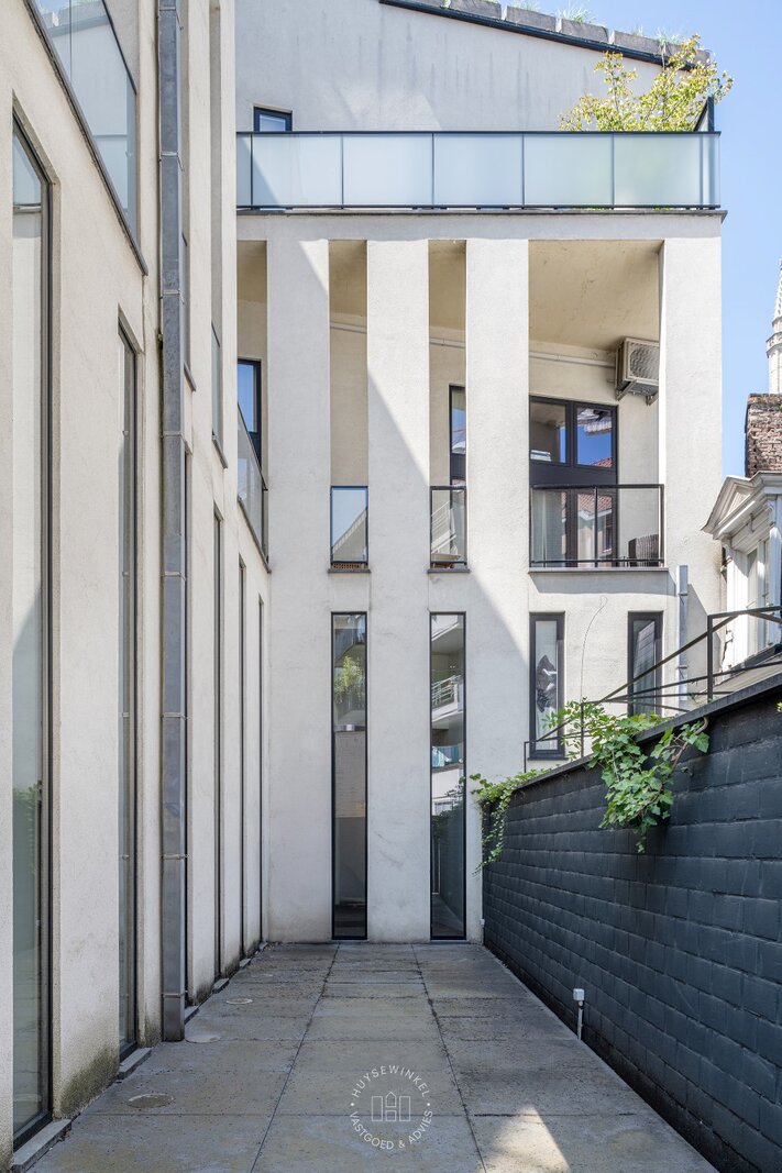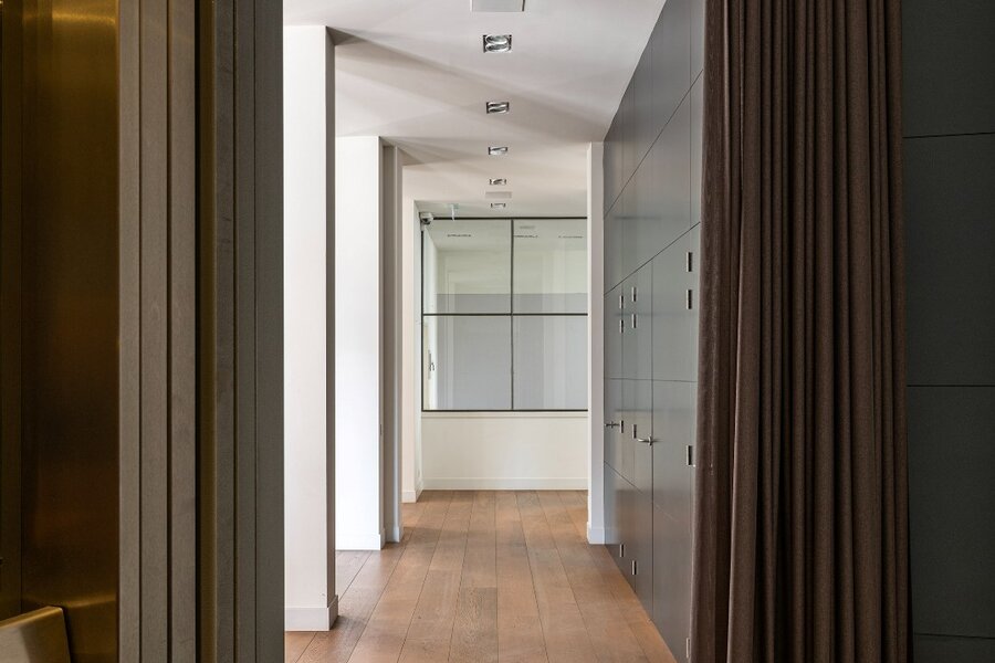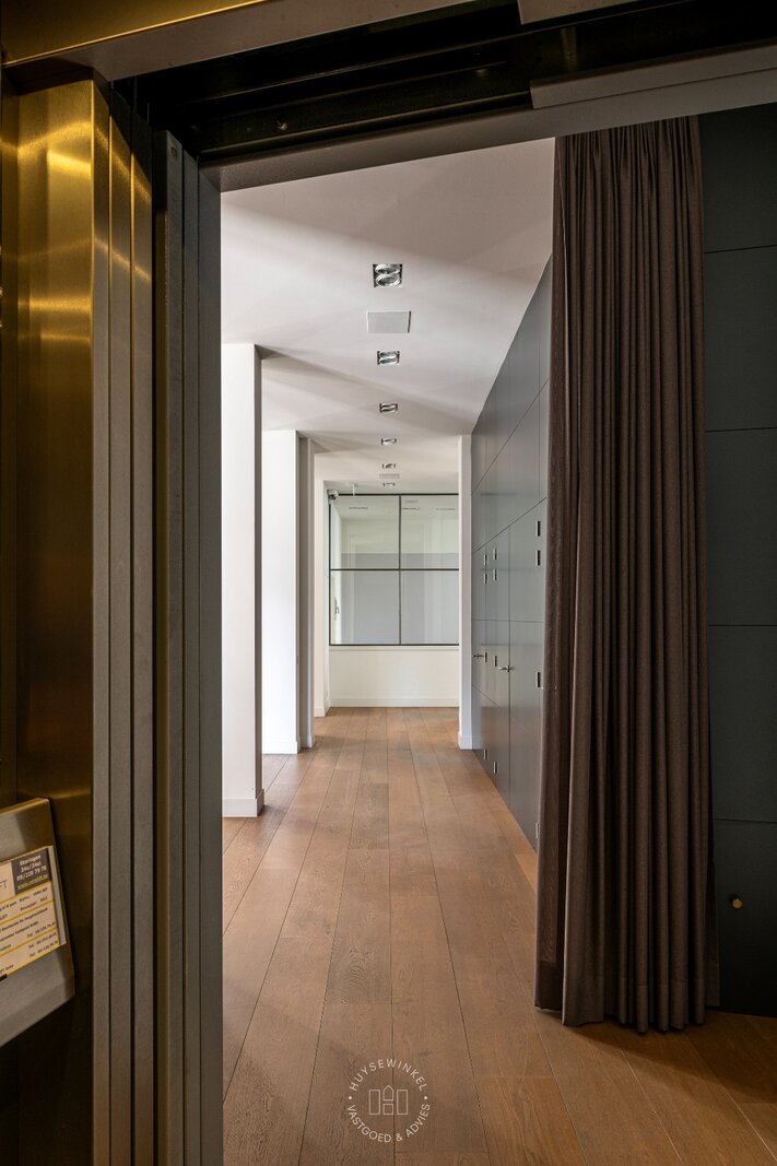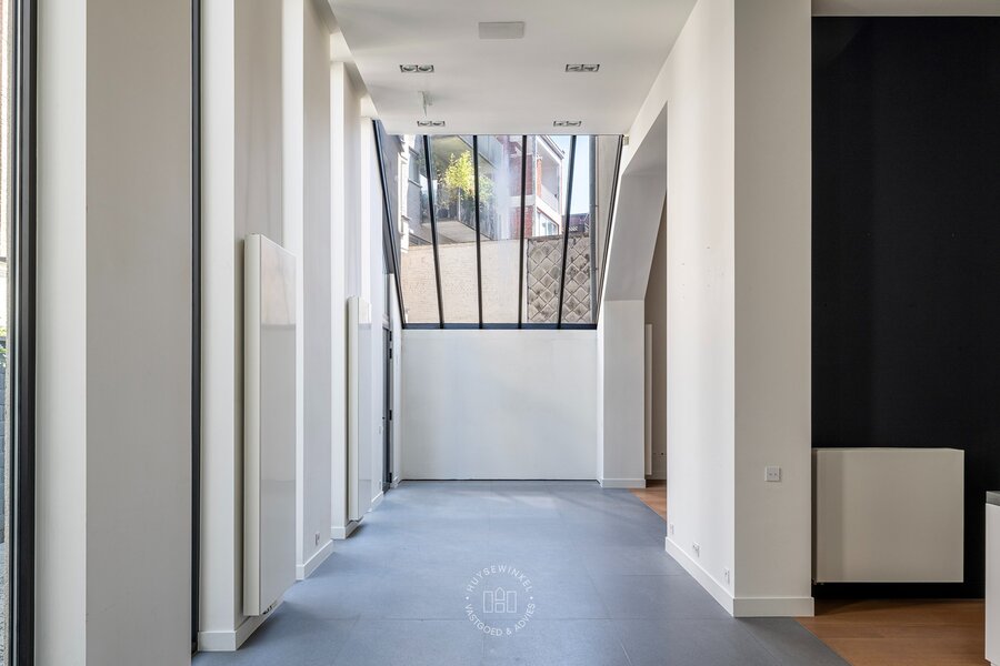 Toegang tot het appartement is mogelijk via de eigen voordeur, de gemeenschappelijke hal én de privatieve lift vanuit de garageverdieping.
