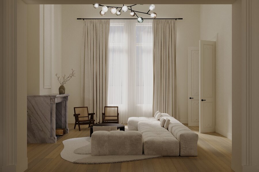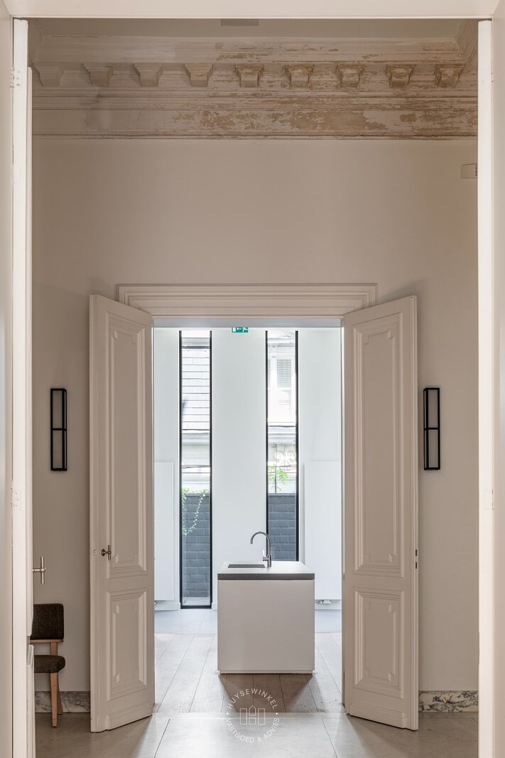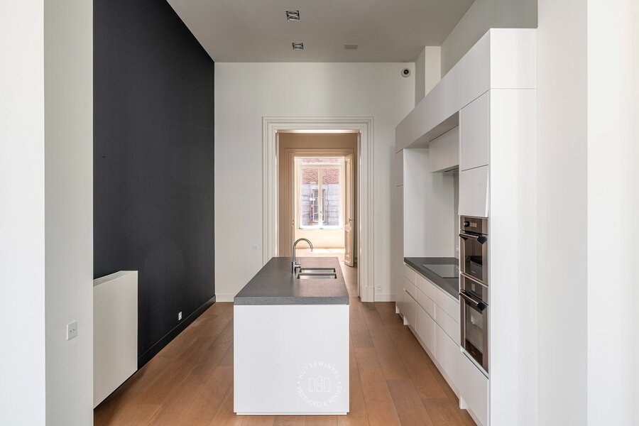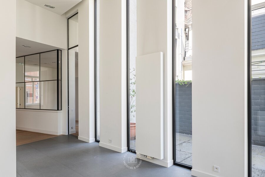 Dit hoekappartement is gelegen in een authentiek herenhuis, daterend van rond 1875, dat in 2015 een grondige en kwalitatieve totaalrenovatie onderging naar de huidige kleinschalige residentie. Tot op heden deden de ruimtes dienst als lifestyle-toonzaal, waardoor er reeds een sterke basis aanwezig is om verder te transformeren naar een luxe appartement.