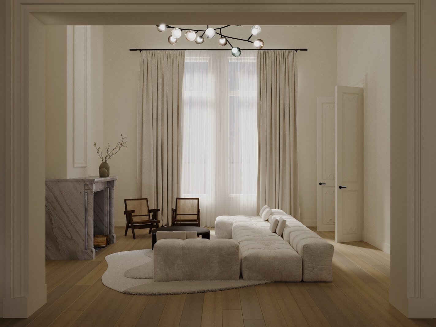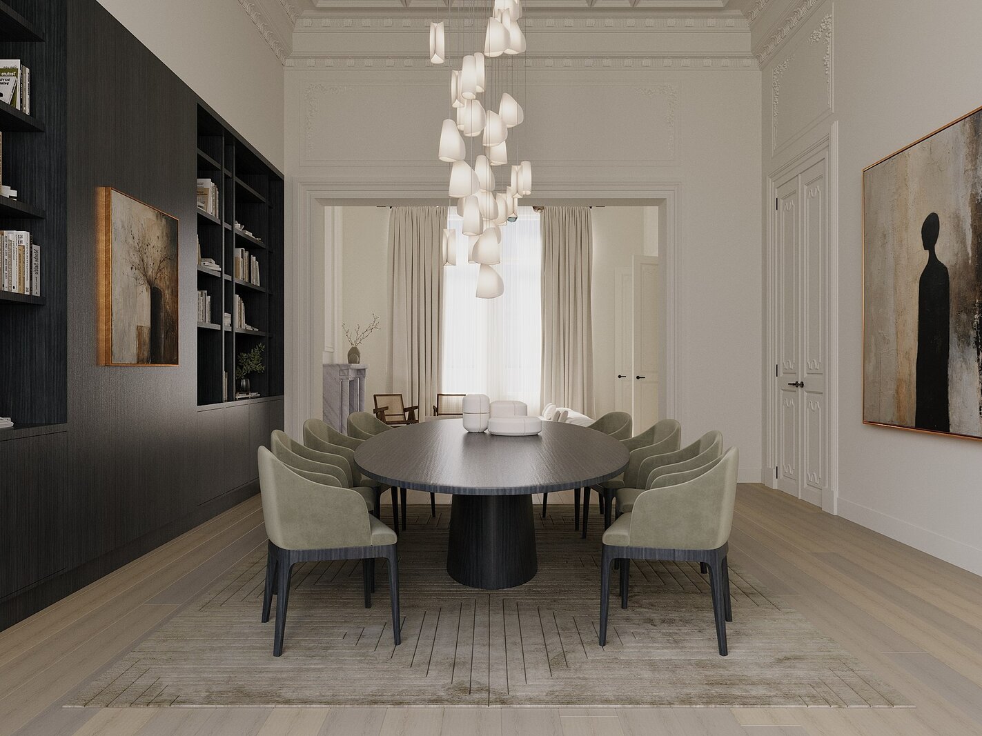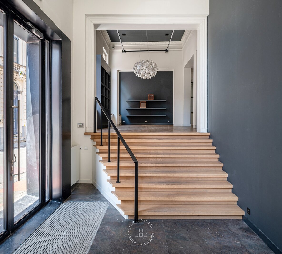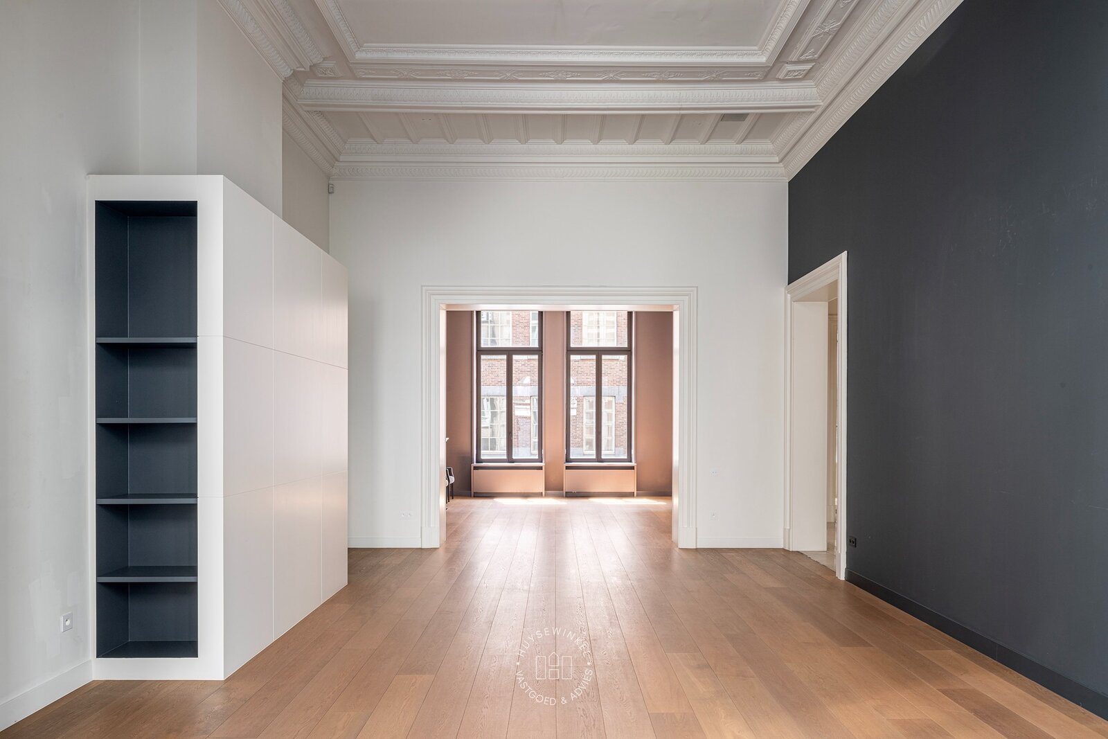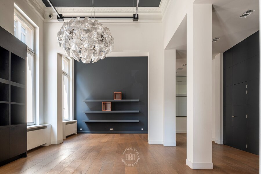 Kenmerkend aan deze eigendom zijn de imposante plafondhoogtes, de overvloedige lichtinval, de moulures en het reeds aanwezige maatwerk.
