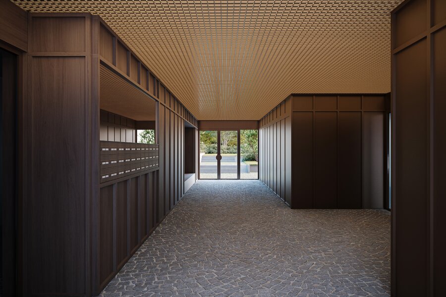 Le jardin central prolonge naturellement le Parc Tenbosch, offrant des vues verdoyantes et panoramiques depuis chaque résidence.