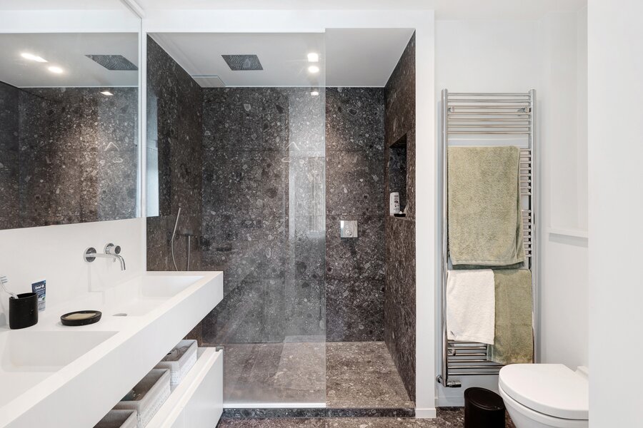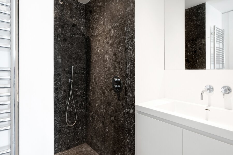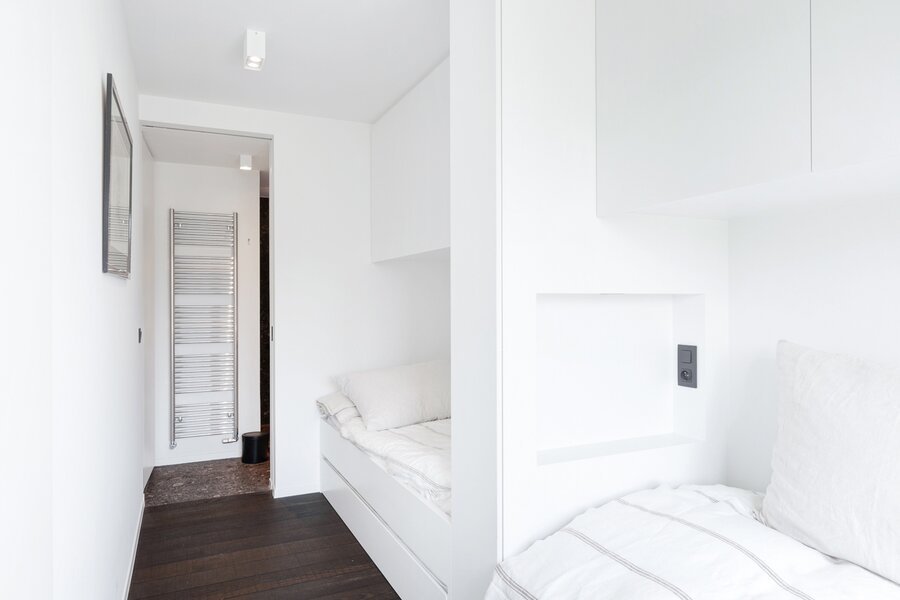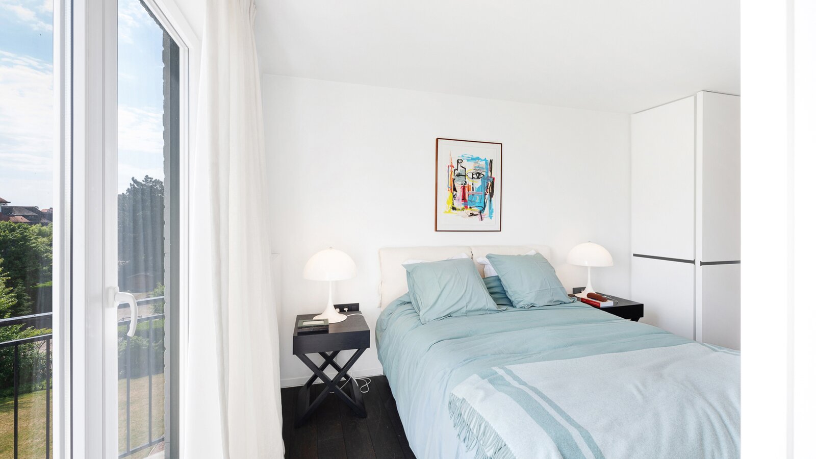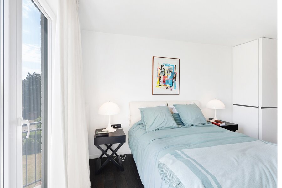 Chambre à coucher principale, armoires encastrées pratiques avec salle de bain complète. Deuxième chambre (2 lits) avec placards et salle de douche. Cave privée. Possibilité d'acheter une double place de parking dans la résidence. Vaut absolument la peine d'être visité. (EPC 162 kWh/m² - UC 1815582).