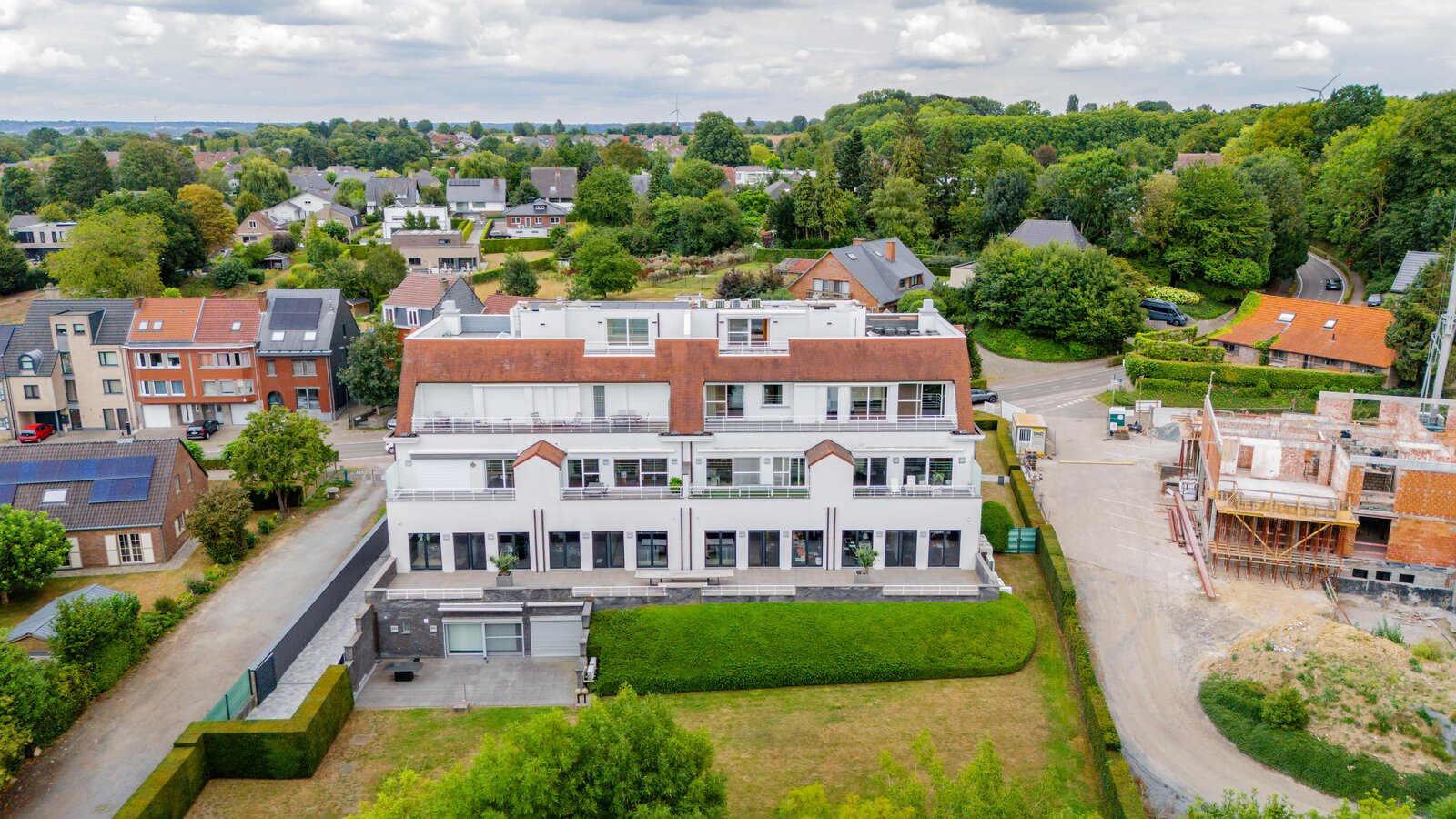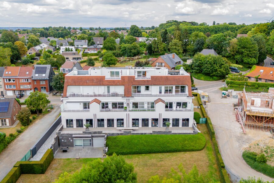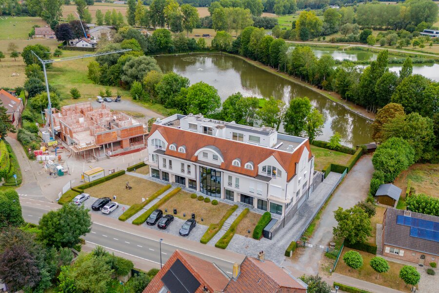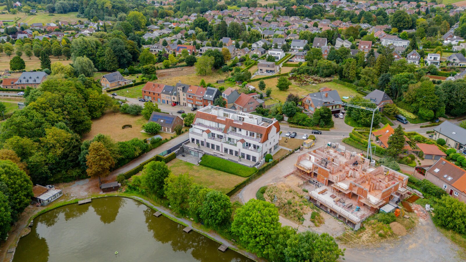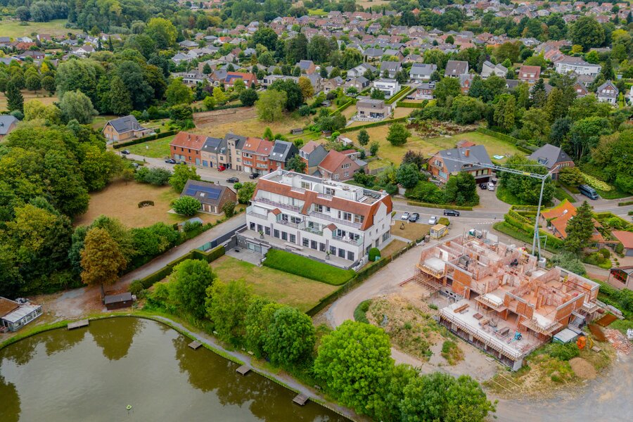 prachtige penthouse gelegen op één van de mooiste plekken van Sint-Pieters-Leeuw met blijvend uitzicht op natuurgebied en vijvers aan de achterzijde .
