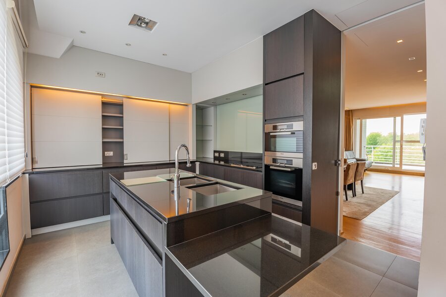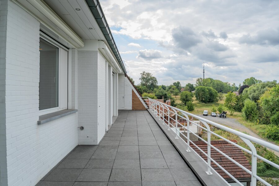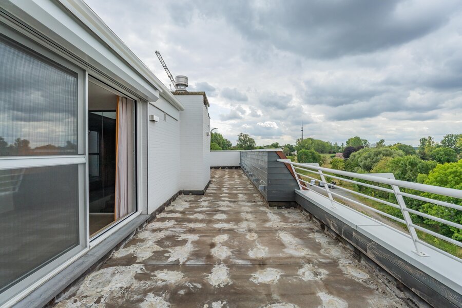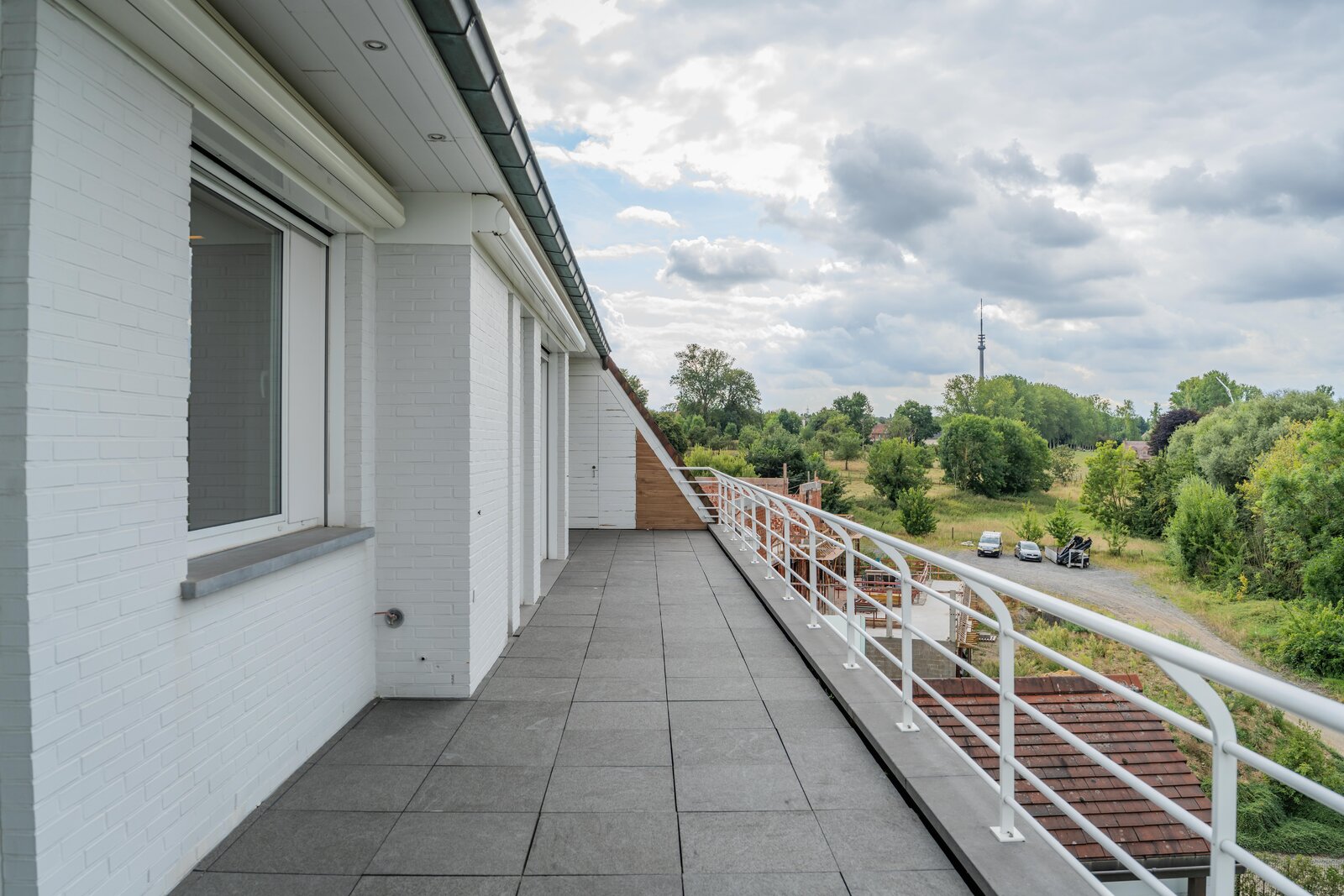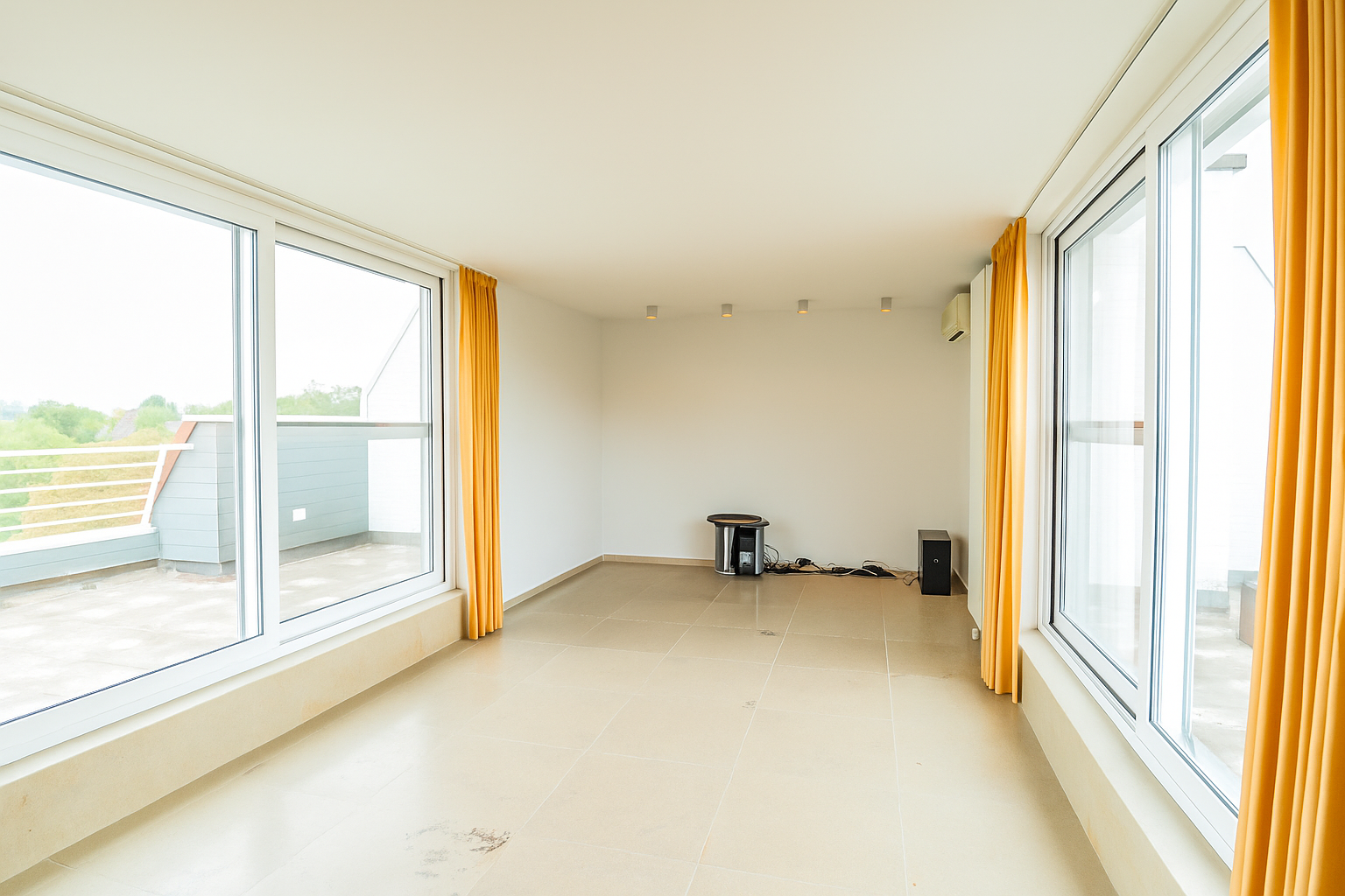 prachtige penthouse gelegen op één van de mooiste plekken van Sint-Pieters-Leeuw met blijvend uitzicht op natuurgebied en vijvers aan de achterzijde .