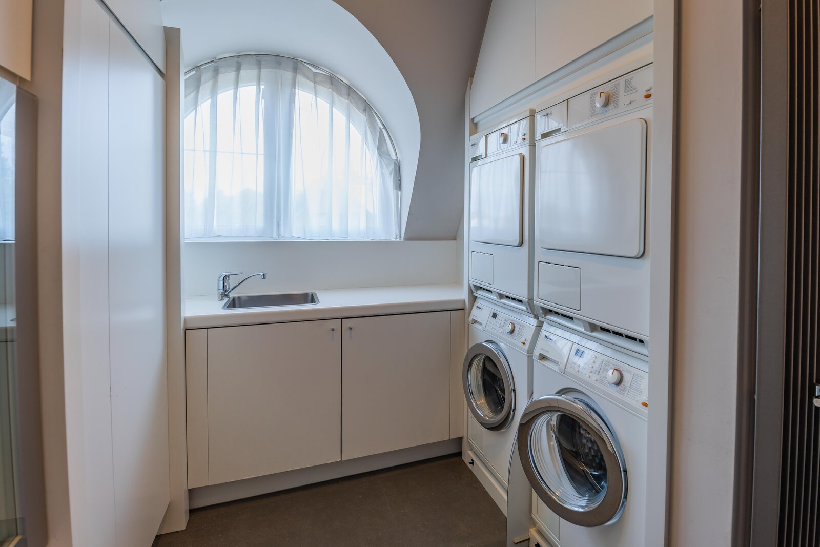 Hyper geïnstalleerde keuken met afzonderlijke berging / wasruimte.