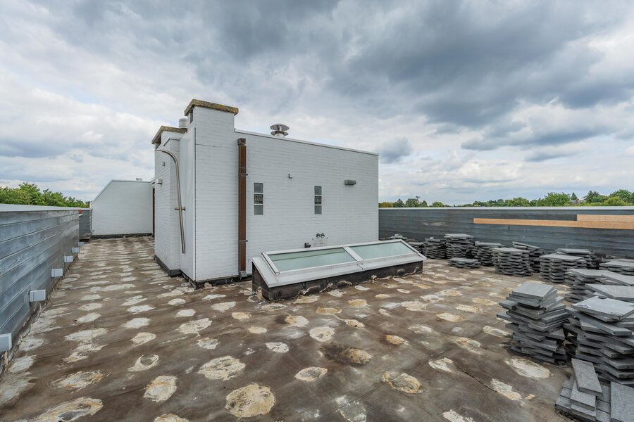 Bovenverdiep penthouse : polyvalente ruimte , berging en rondom groot afgeschermd privé dakterras .