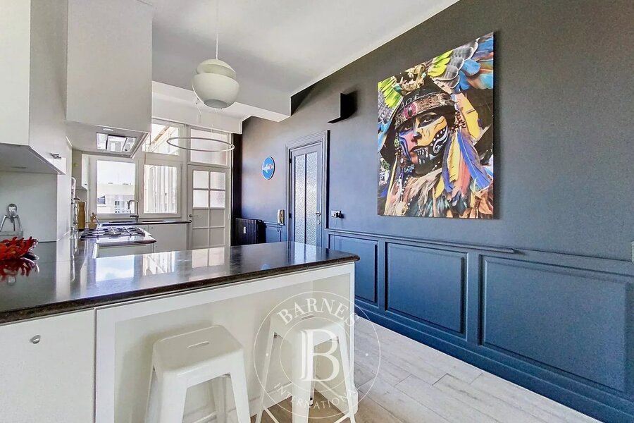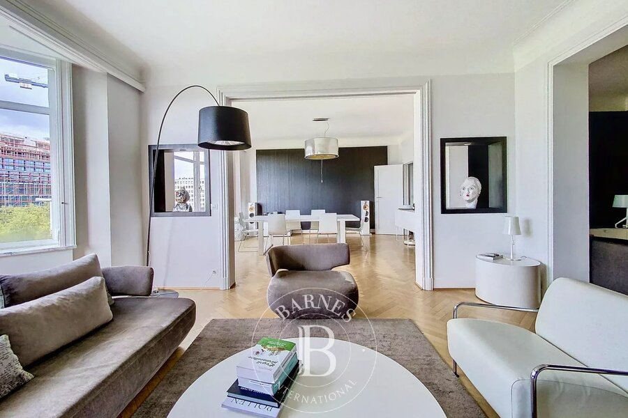 Barnes Brussels vous présente ce bel appartement lumineux et entièrement rénové de 260m2 situé au 4ème étage d’un immeuble Art Déco de 1935, à proximité de la Place Louise et de ses commerces.