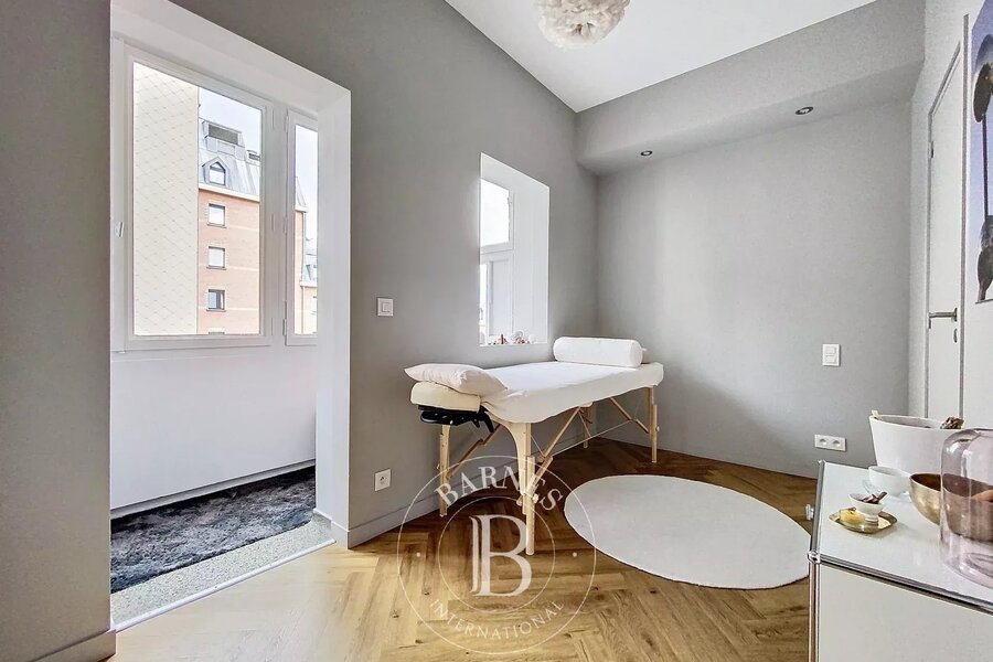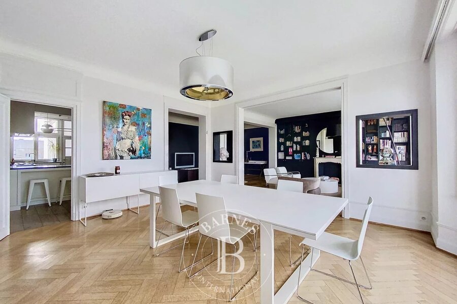 Il se compose comme suit : un hall d'entrée avec vestiaire et toilettes invités, un double salon prolongé d'une salle à manger, une cuisine équipée séparée. La partie nuit propose un programme de 3 belles chambres dont la master avec dressing et balcon, 1 salle de bains, 1 salle de douche ainsi qu'un 4ème chambre ou bureau avec une douche. Une cave.