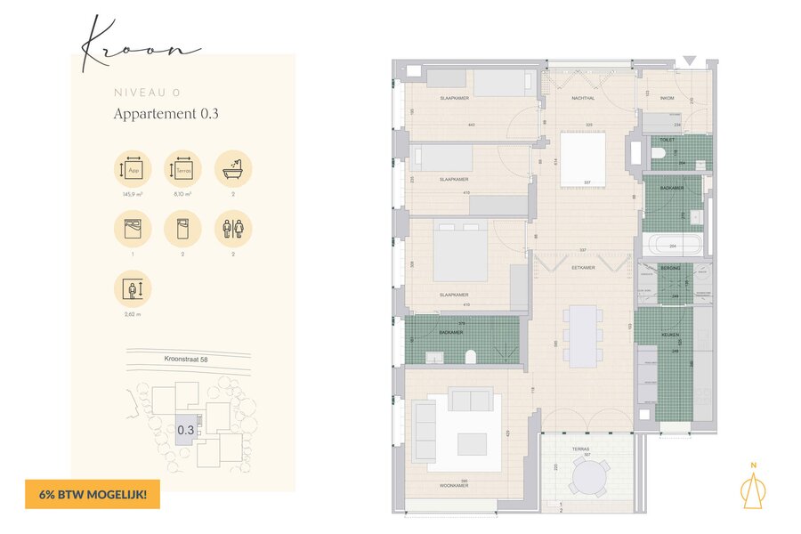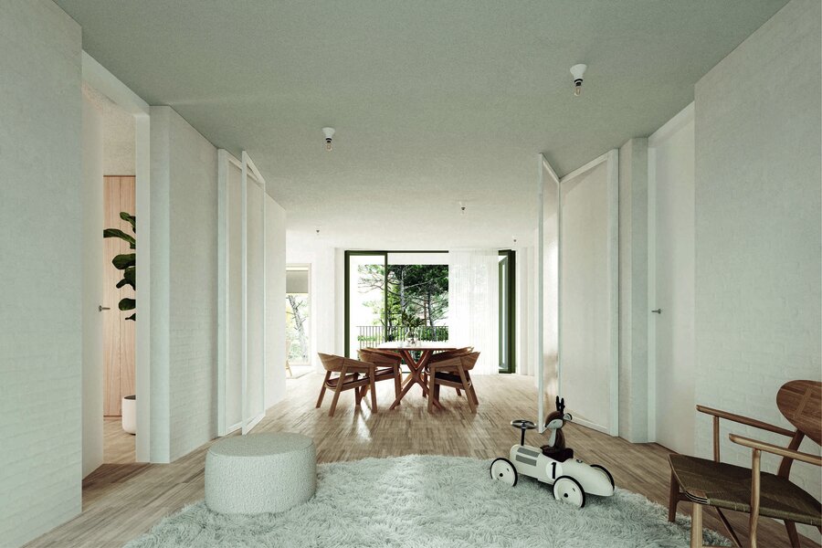 Dans le projet résidentiel de grande qualité Kroon à Lennik, Unicas vend cet appartement d'angle exclusif de 146 m² au rez-de-chaussée, conçu par l'architecte Jo Taillieu. L'aménagement du jardin par l'architecte paysagiste Jan Minne renforce le caractère unique du projet.