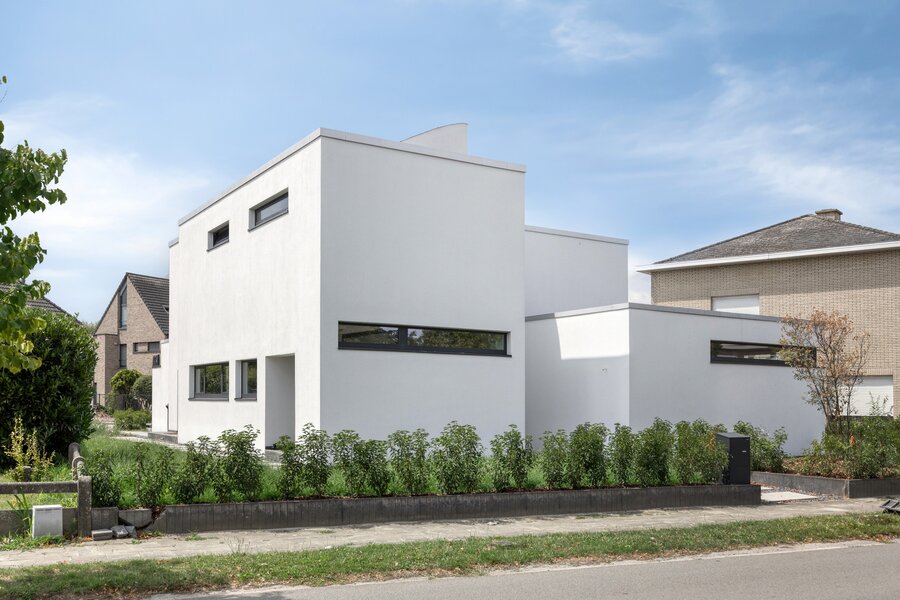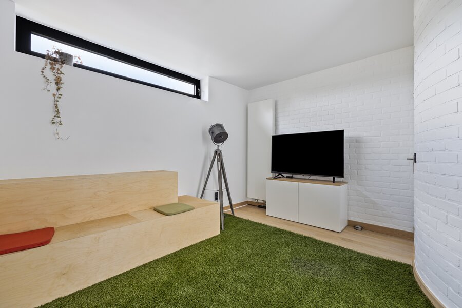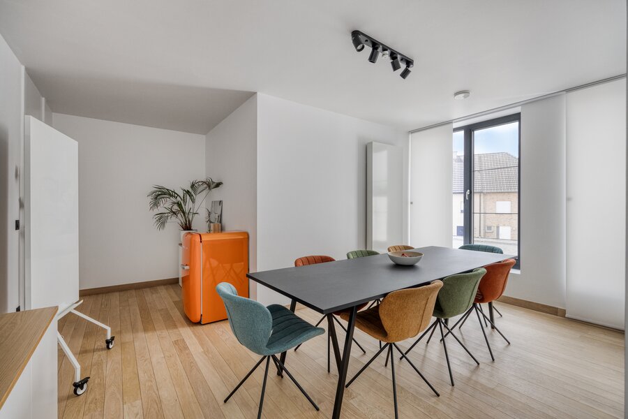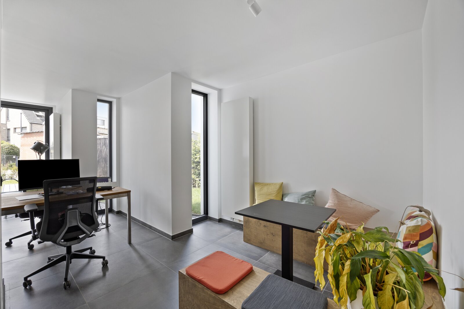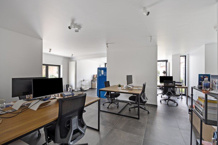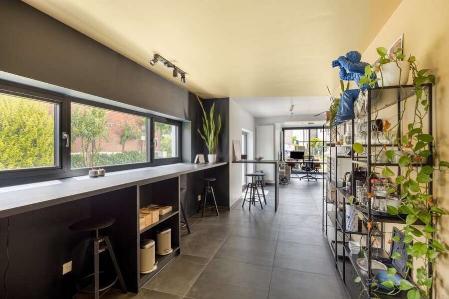 Op de benedenverdieping verwelkomt de inkomhal je met veel natuurlijk licht en vind je een ruime leefruimte terug met grote raampartijen. Bovendien zijn alle aansluitingen voorzien voor het realiseren van een ruime open keuken. De woning beschikt over een afzonderlijke praktijkruimte met mogelijke wachtkamer en een aparte ingang. Je kan hier ook een kangoeroe unit realiseren. De bovenverdieping is ingericht met een ruime badkamer met douche én ligbad. De 4 volwaardige slaapkamers, waarvan eentje met ensuite badkamer, maken het plaatje compleet. Zowel de praktijkruimte als de bovenverdieping kunnen apart verwarmd worden.