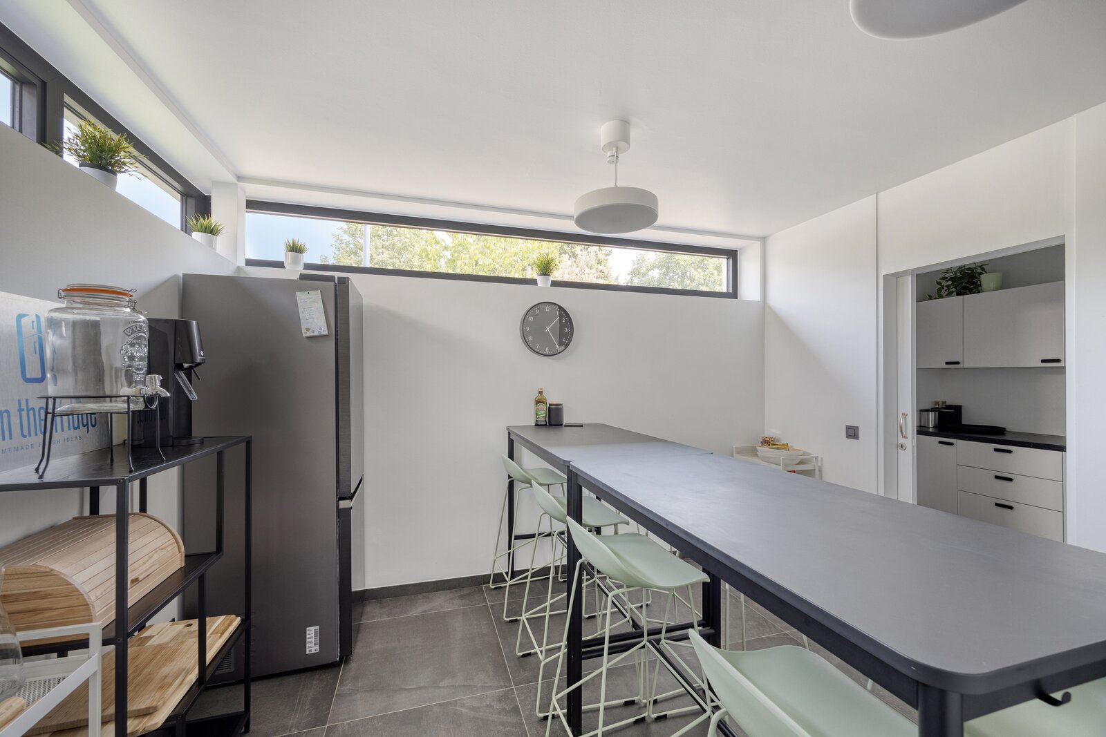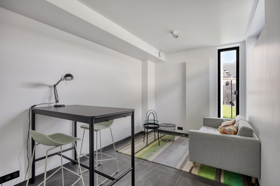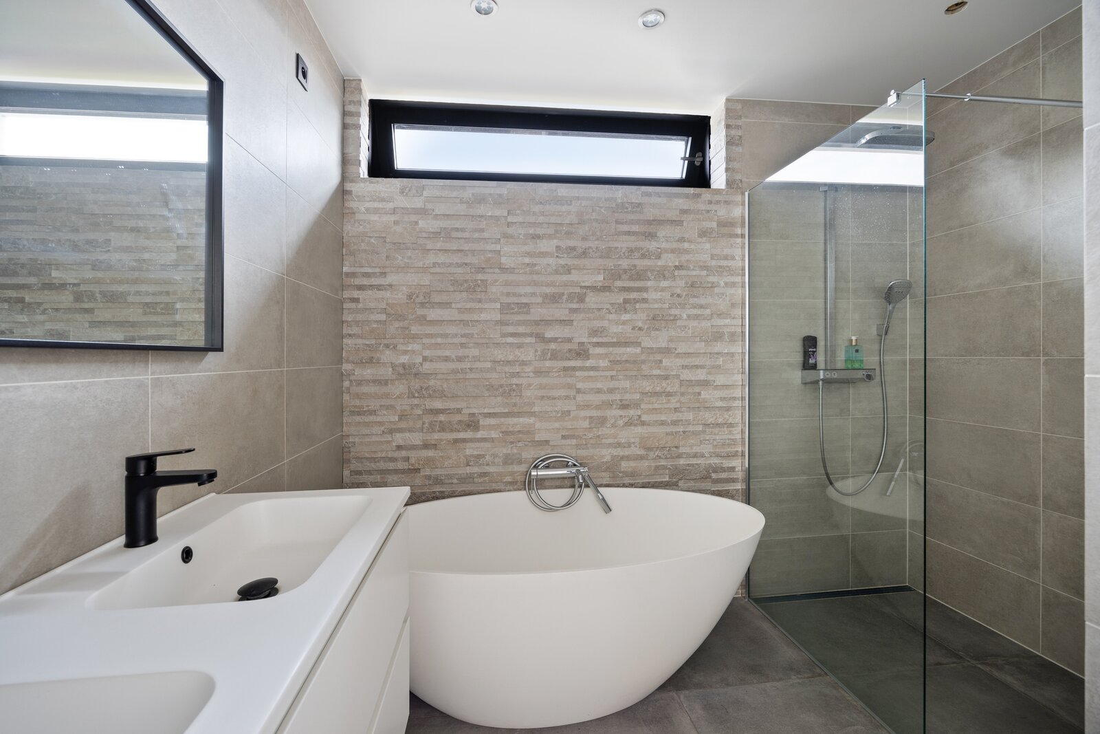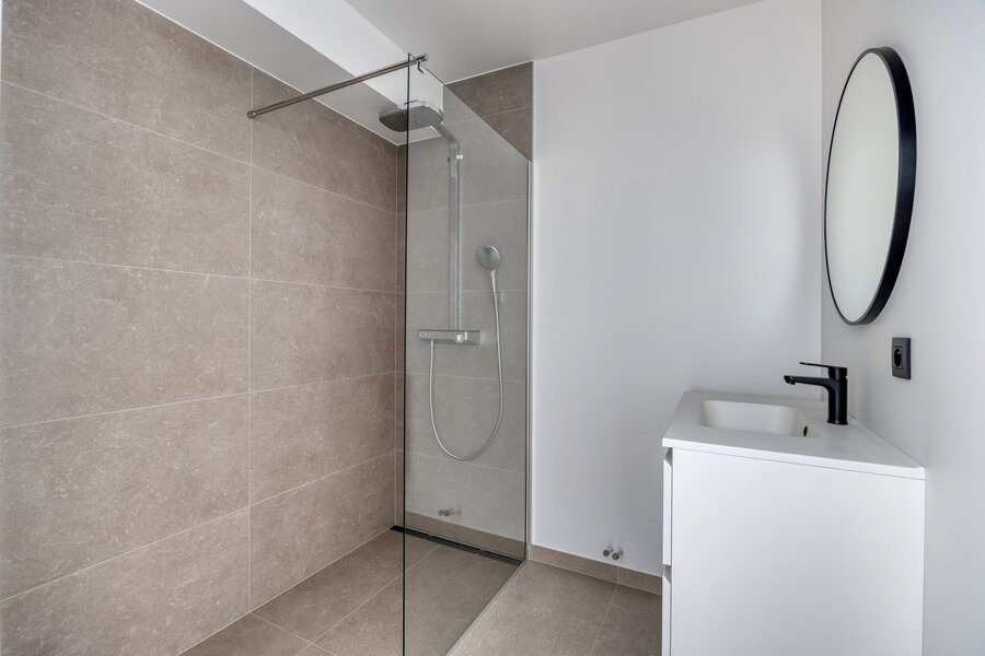 Op de benedenverdieping verwelkomt de inkomhal je met veel natuurlijk licht en vind je een ruime leefruimte terug met grote raampartijen. Bovendien zijn alle aansluitingen voorzien voor het realiseren van een ruime open keuken. De woning beschikt over een afzonderlijke praktijkruimte met mogelijke wachtkamer en een aparte ingang. Je kan hier ook een kangoeroe unit realiseren. De bovenverdieping is ingericht met een ruime badkamer met douche én ligbad. De 4 volwaardige slaapkamers, waarvan eentje met ensuite badkamer, maken het plaatje compleet. Zowel de praktijkruimte als de bovenverdieping kunnen apart verwarmd worden.