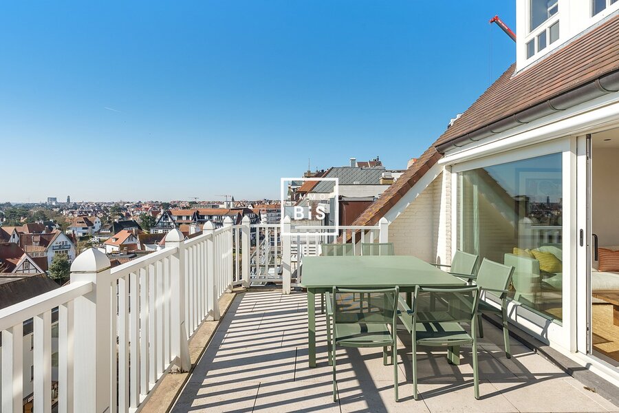 Magnifique duplex penthouse avec 3 chambres à coucher, bénéficiant d'une magnifique terrasse orientée plein sud avec vue panoramique, idéalement situé dans la résidence Martinique, un bâtiment exclusif au cœur du Zoute, avec les magasins, les restaurants et la plage à seulement quelques pas.