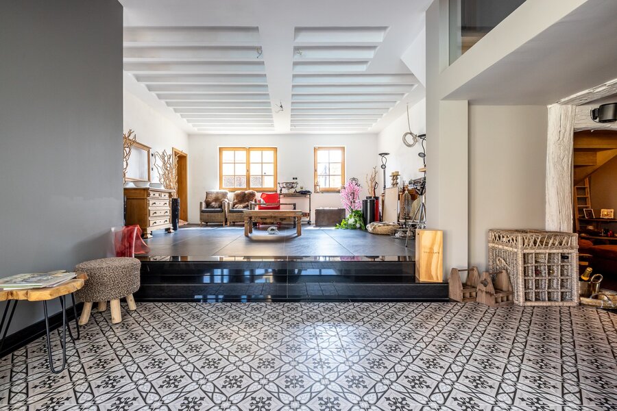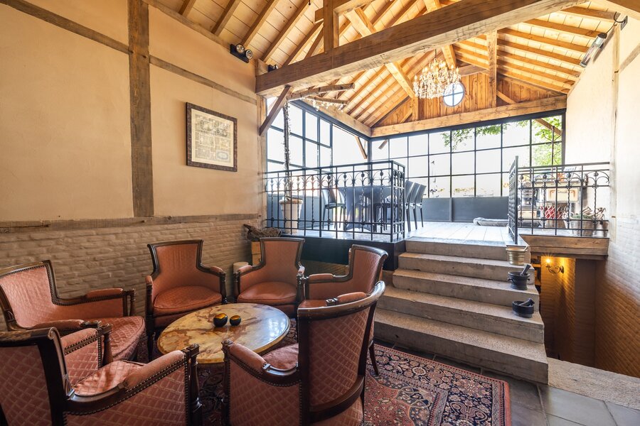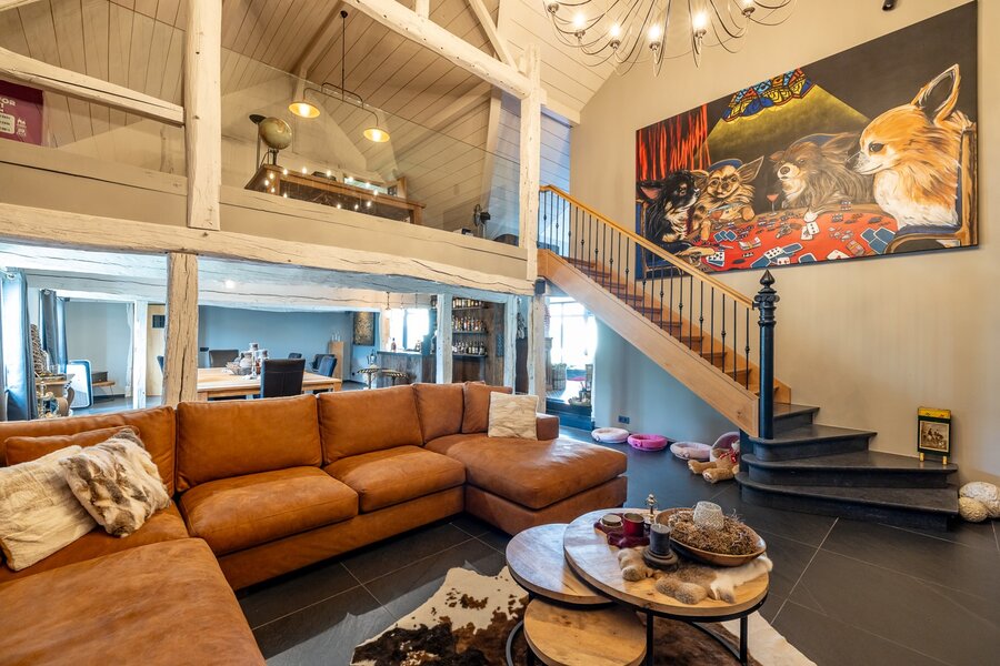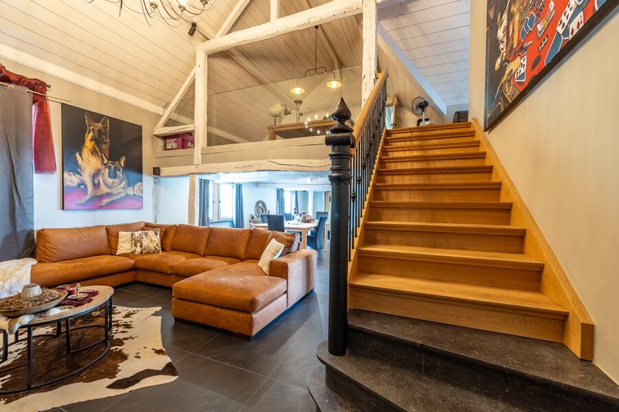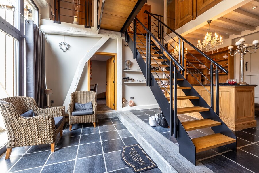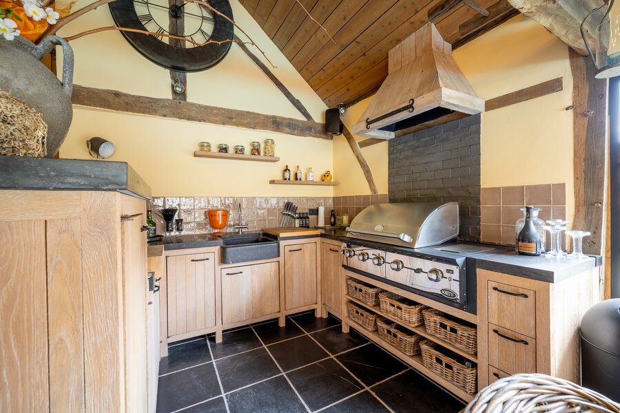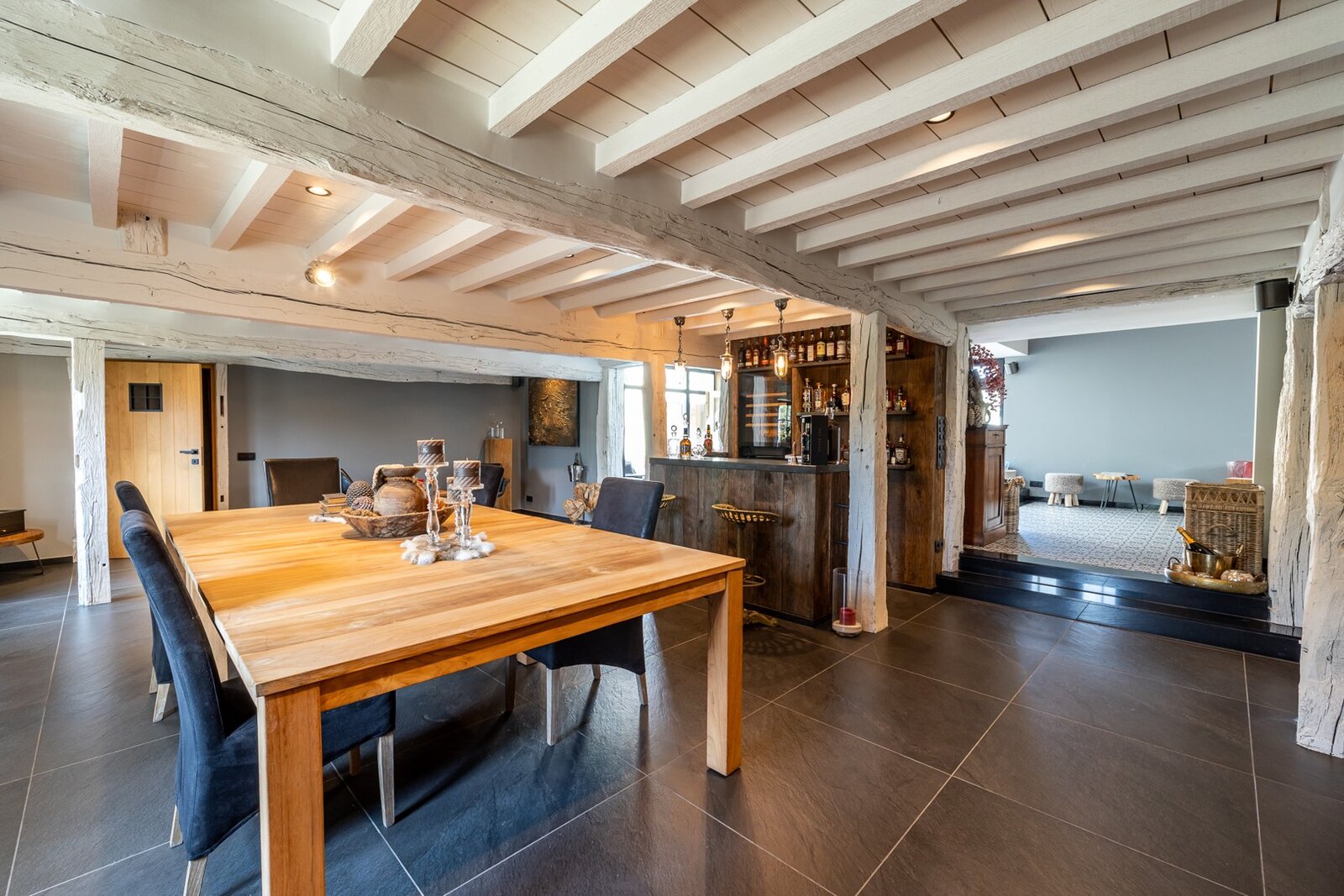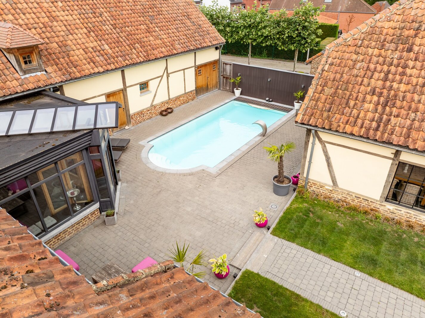 De hoevewoning is afgewerkt met hoogwaardige natuurlijke materialen, met op de binnenkoer een verwarmd zwembad met toegang tot het poolhouse met ingerichte bar en douchemogelijkheden.