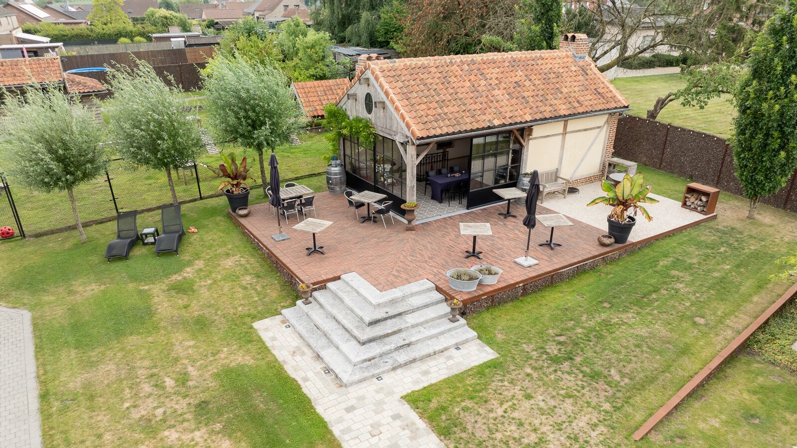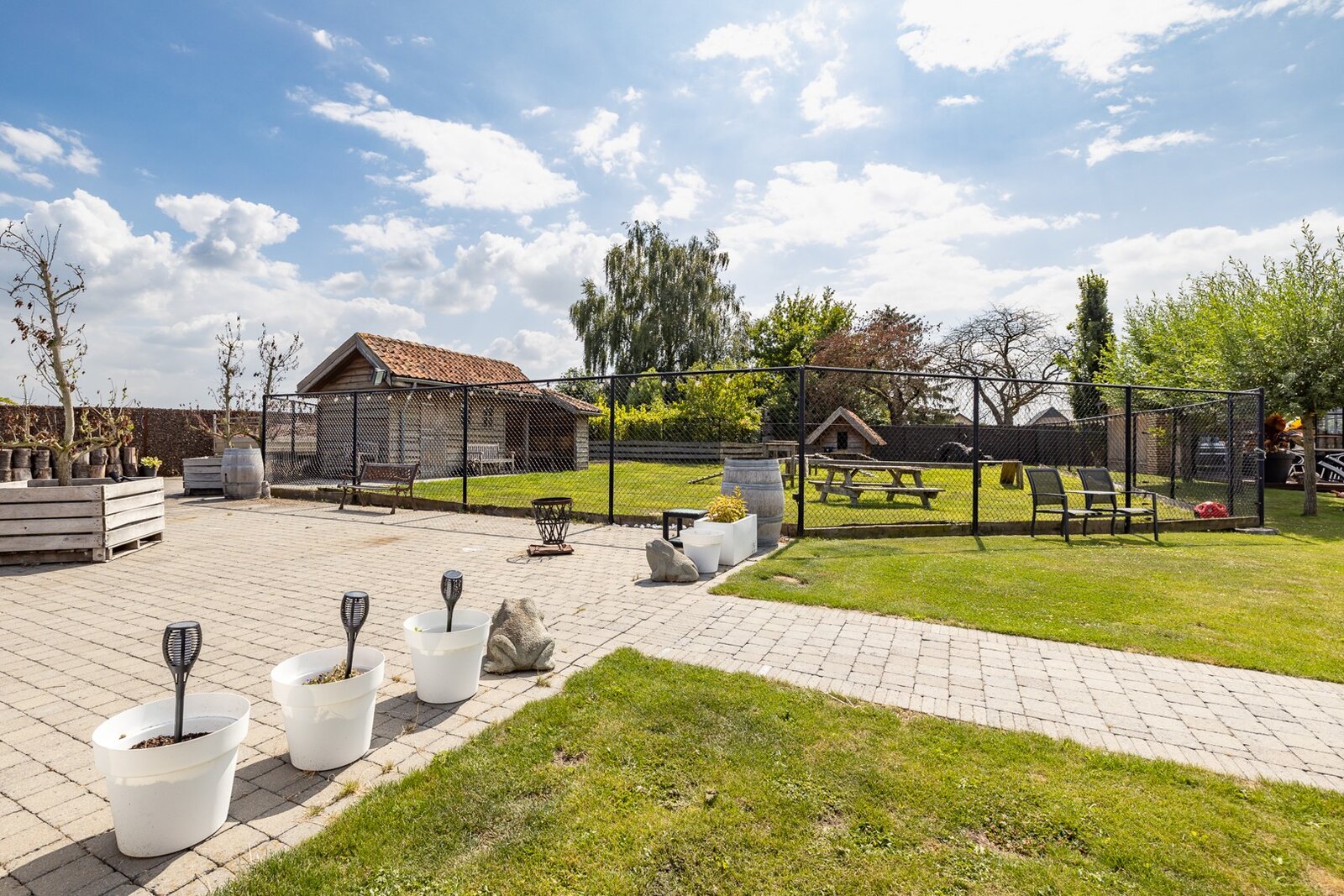 Achteraan het perceel is er momenteel een dierenweide en een zeer ruime loods/opslagruimte van 320 m² (voorzien van 48 zonnepanelen)
