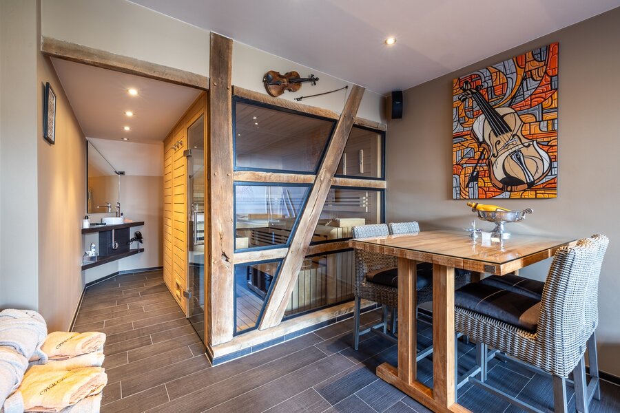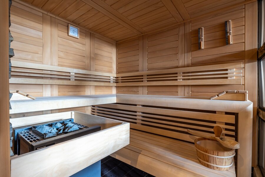 Het wellnessgedeelte bestaat uit een sauna, hamam, infrarood, ontspanningsruimte, douche en jacuzzi.