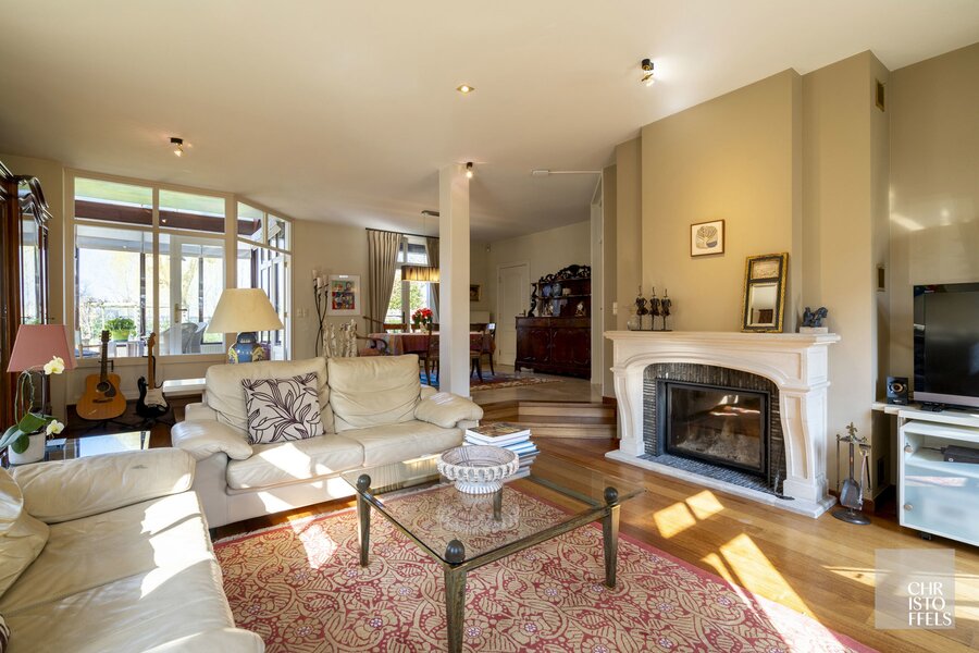 Deze villa heeft een eigen, privé inkomhal. Op de begane grond bevindt zich de inkomhal met gastentoilet, een ruime woonkamer met haard, een tuinkamer/orangerie, een lichtvolle eetkamer en een keuken. Dankzij de grote raampartijen geniet u hier van een prachtig uitzicht op de tuin en het terras. Aansluitend vindt u een wasplaats, berging en een tweede toilet.