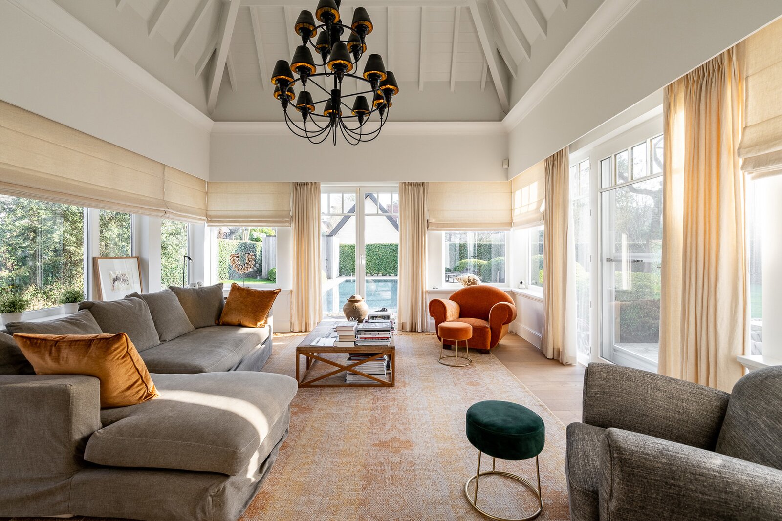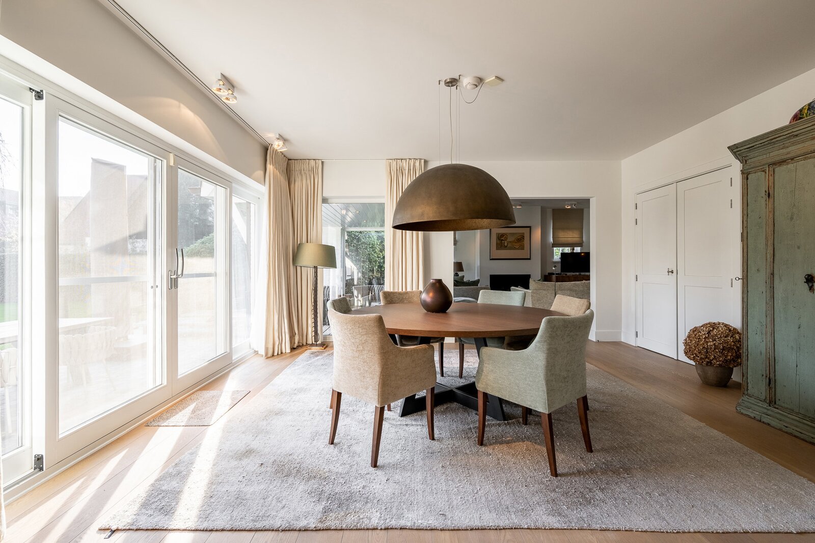Disposition : vaste hall d'entrée avec vestiaire et toilette invités, lumineux séjour avec salon et salle à manger, cuisine entièrement équipée avec arrière-cuisine, et un bureau cosy avec vue sur le jardin orienté plein sud et la piscine chauffée.