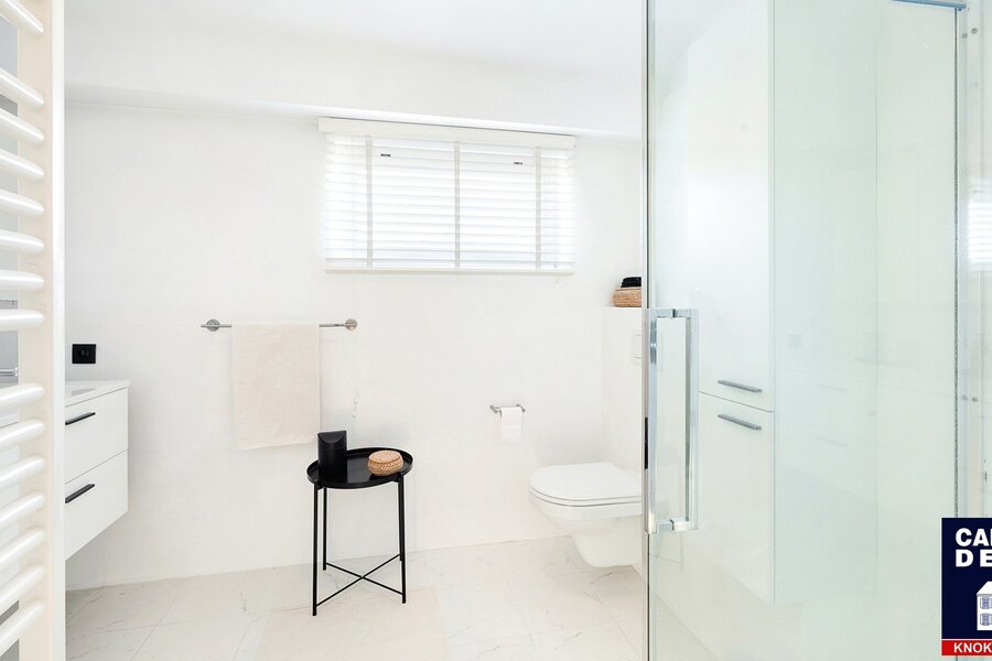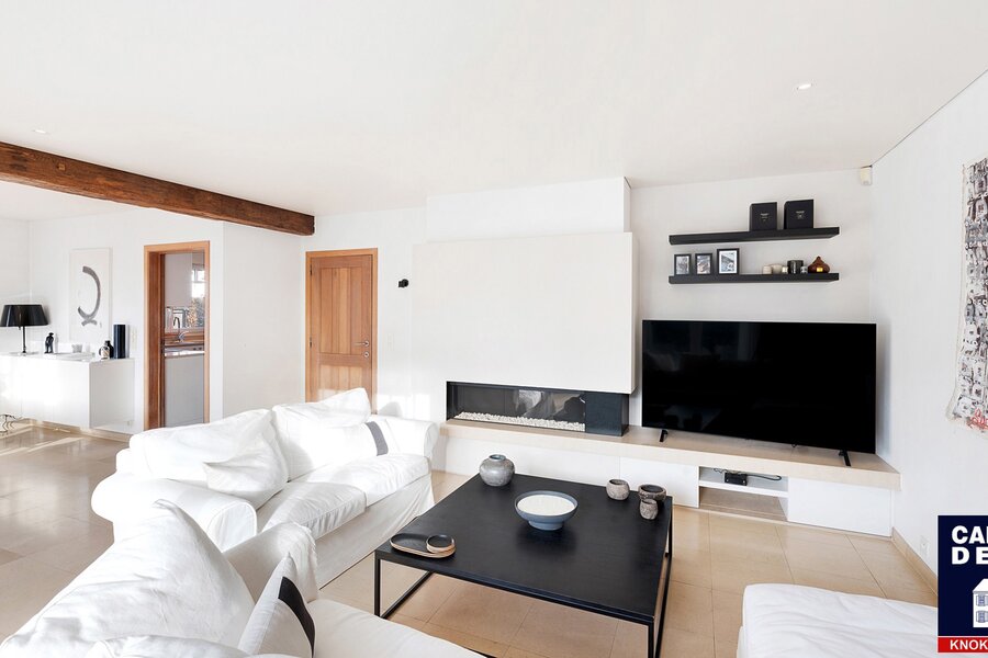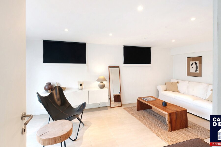 Composition : hall d'entrée spacieux avec vestiaire et toilettes invités. Le salon et la salle à manger, clairs et spacieux, disposent d'une cheminée à gaz et offrent un accès direct à la terrasse ensoleillée et au jardin. La cuisine moderne entièrement équipée avec coin petit-déjeuner est idéale pour les moments culinaires. Au rez-de-chaussée se trouve une première chambre avec accès à la terrasse et au jardin, ainsi qu'une salle de bains avec lavabo, baignoire et douche. Il y a également un grand débarras avec un coin buanderie.