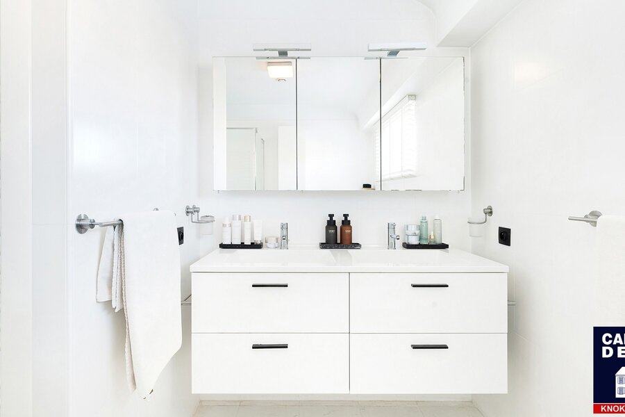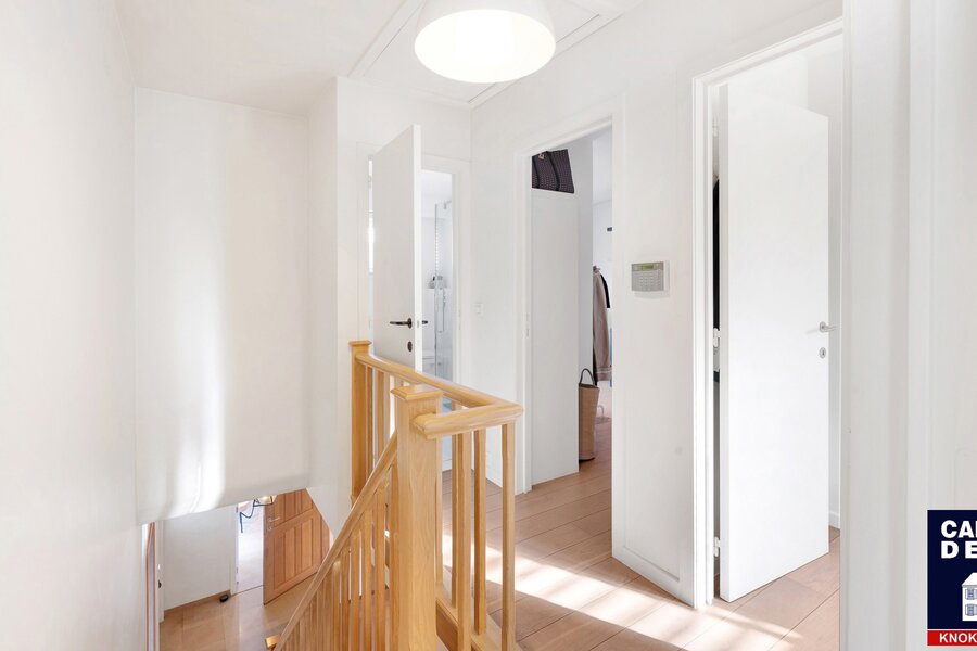 Au premier étage se trouvent la chambre principale, avec des armoires encastrées et un dressing attenant, ainsi qu'une troisième chambre spacieuse avec également des armoires encastrées et un dressing. La quatrième pièce est idéale comme bureau ou chambre supplémentaire et dispose d'une terrasse. La salle de bains de cet étage est équipée d'une douche, de toilettes et d'un double lavabo.