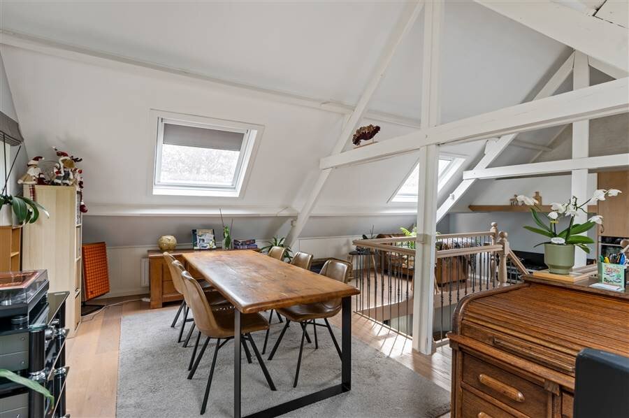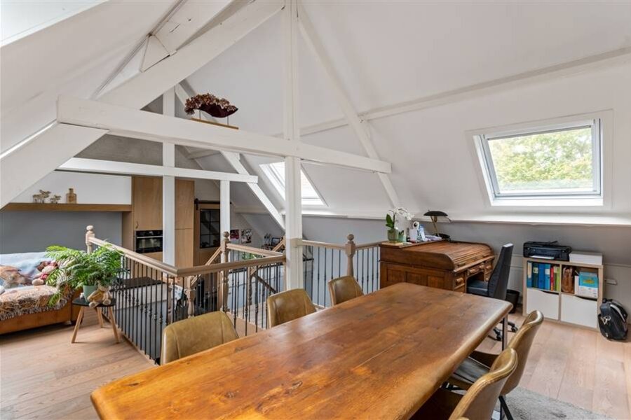 De tweede woning is gelijkaardig ingedeeld en biedt eveneens een woon- en eetruimte, een praktische keuken, één badkamer, twee slaapkamers, een grote zolder en een atelier ideaal voor een zelfstandige of creatieve ondernemer.